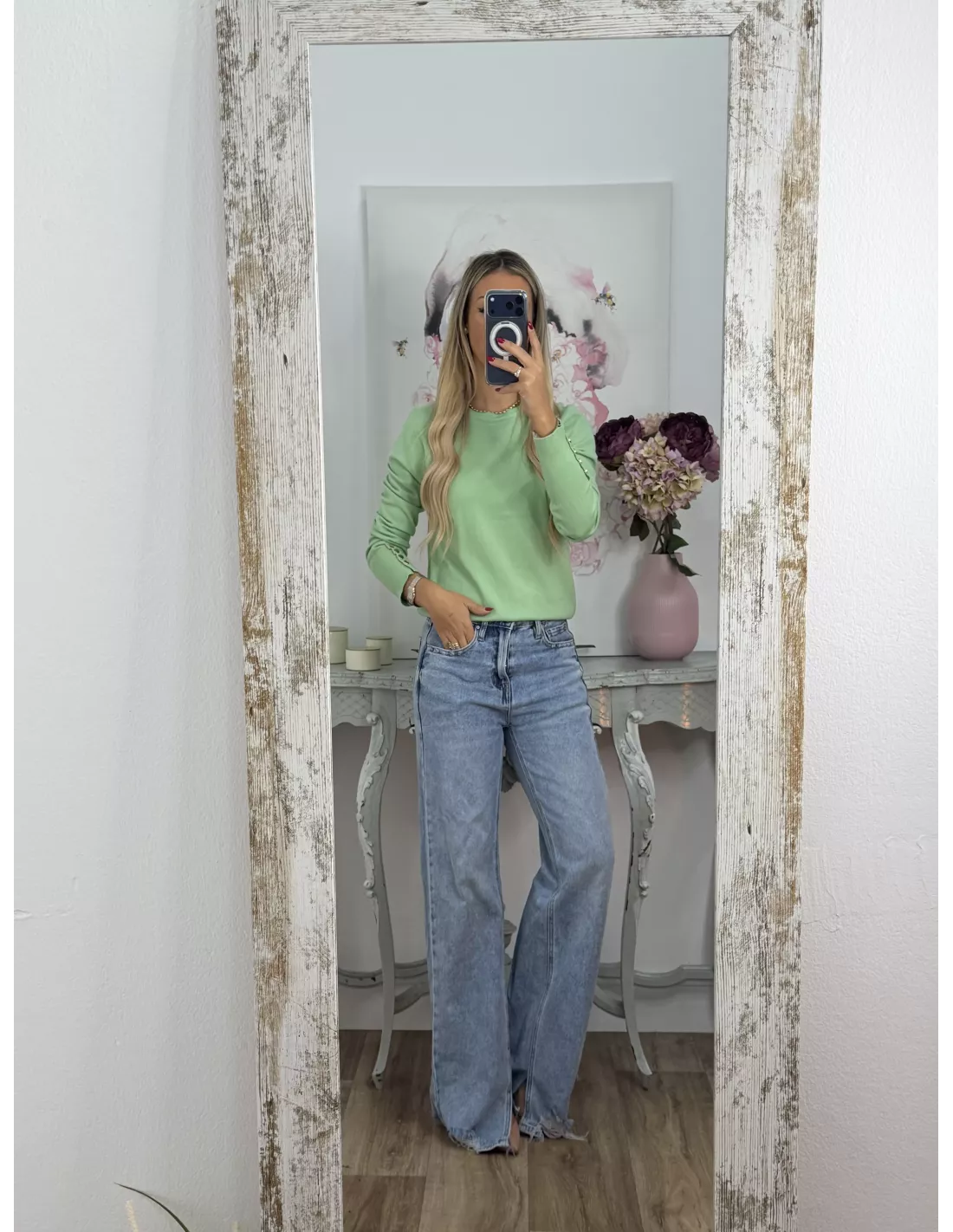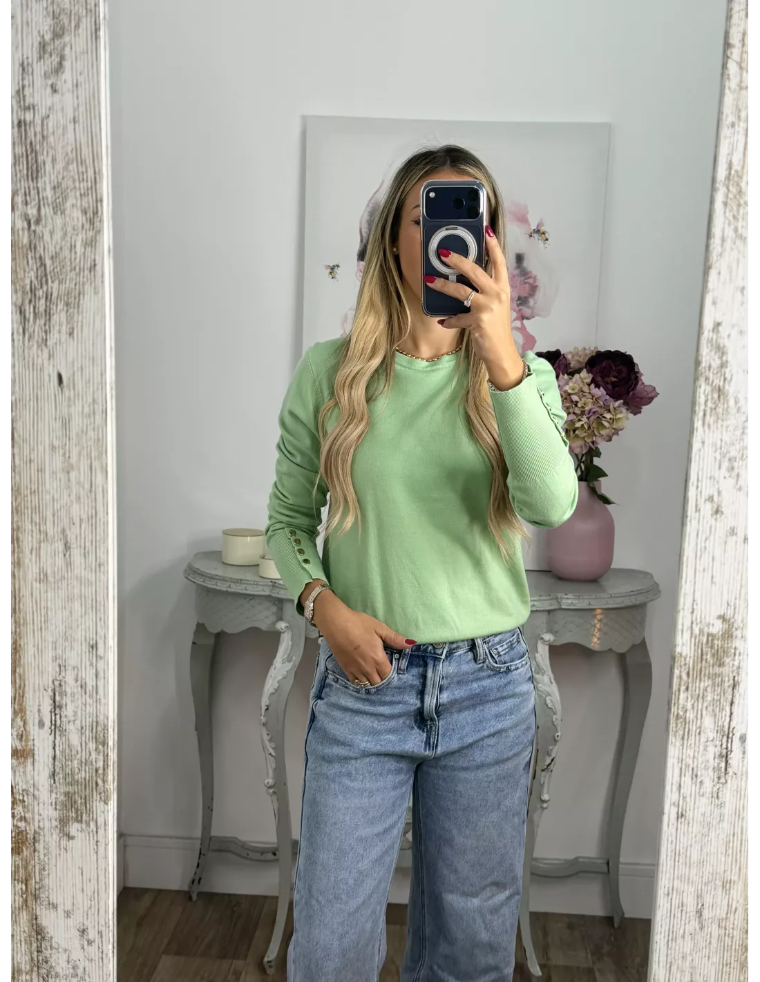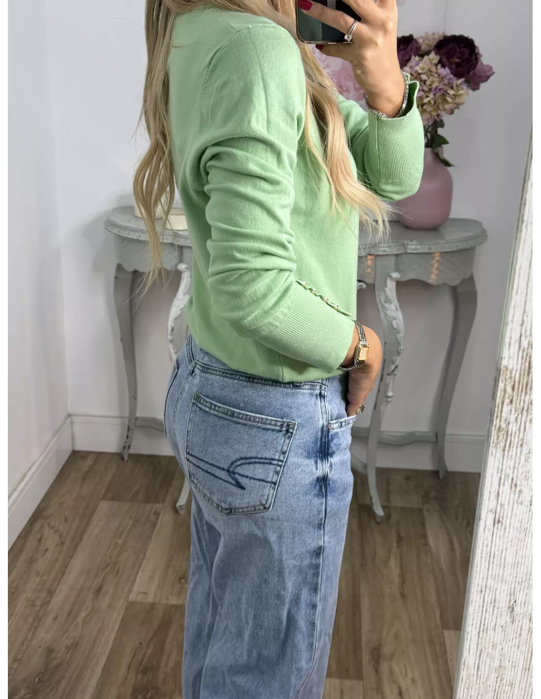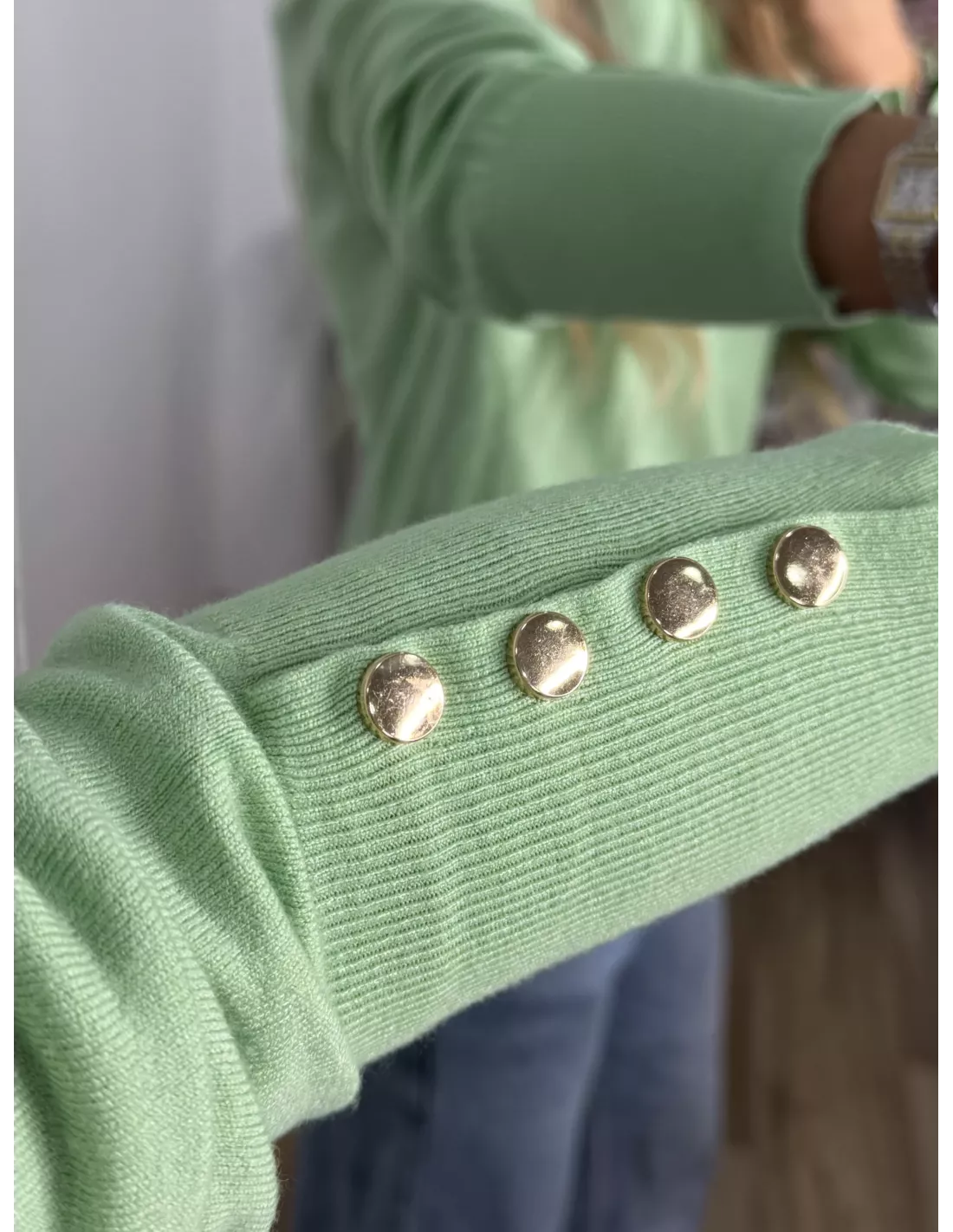 Jersey verde claro basic con botones en el puño