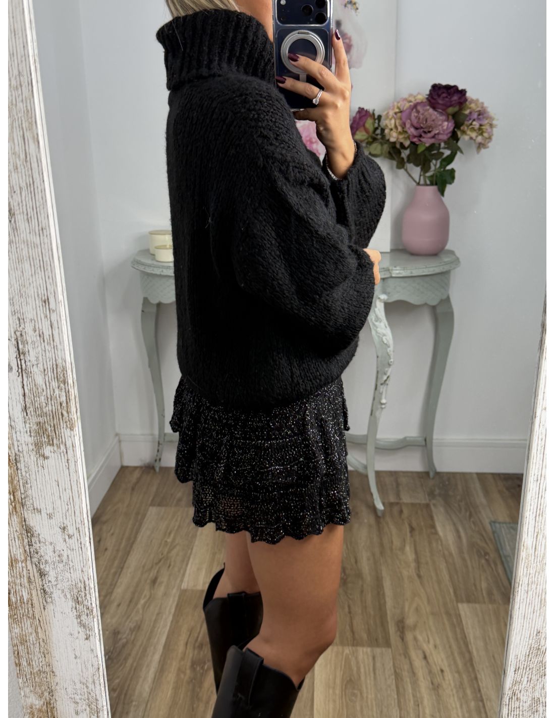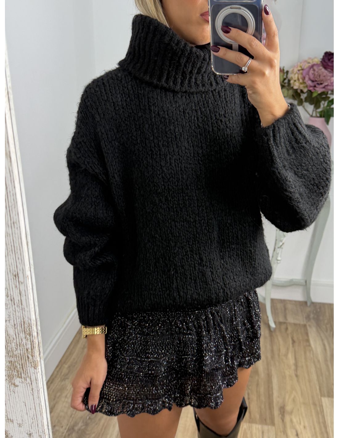 Jersey de cuello alto de tacto suave, no pica nada. Es de Corte oversize.