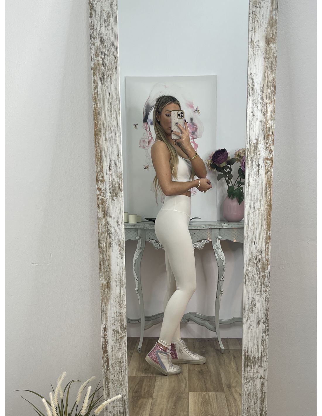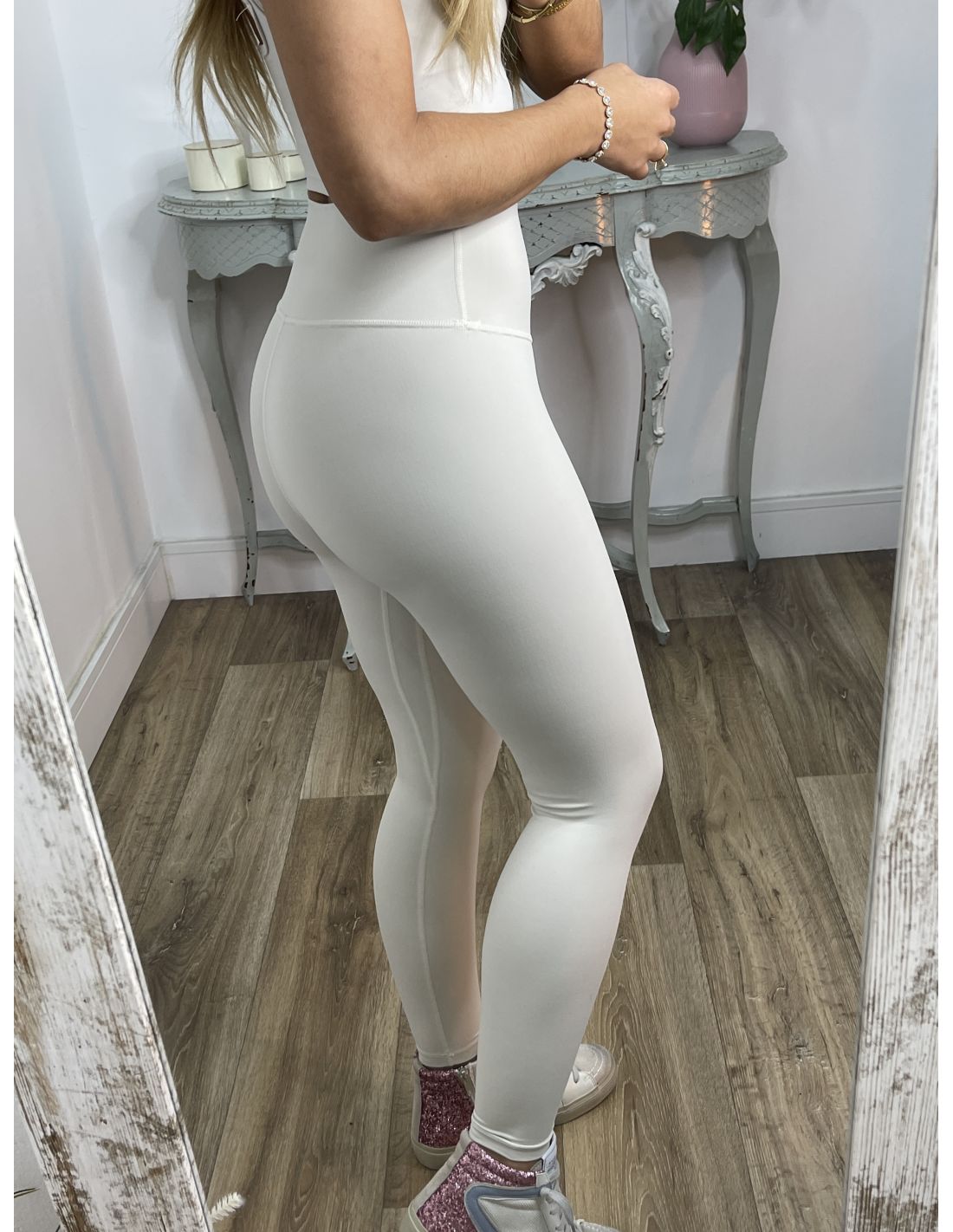 Leggins de tiro alto, la cintura la tela va doble y recoge el abdomen. Tienen tacto muy agradable.