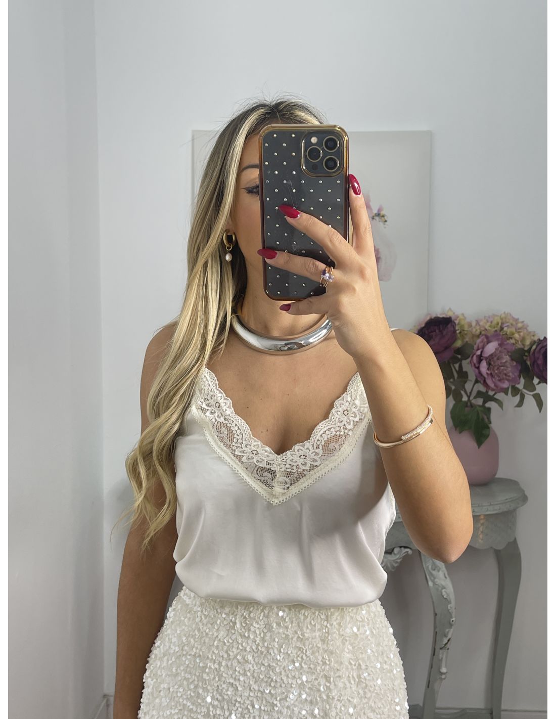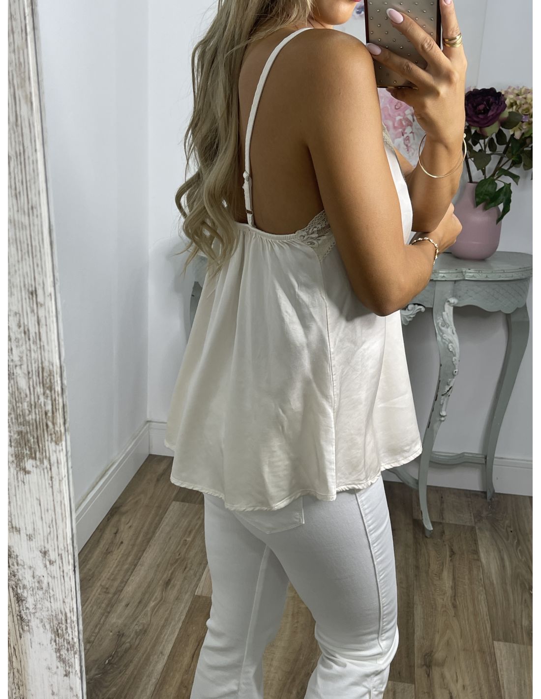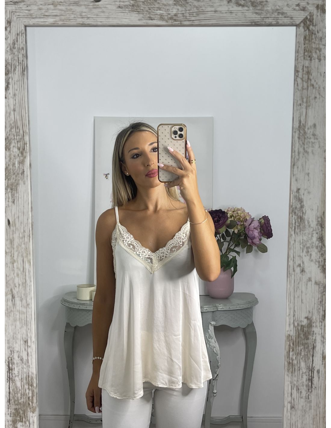 Lencera de tejido satinado con tiranta regulable. La parte de atrás lleva goma.