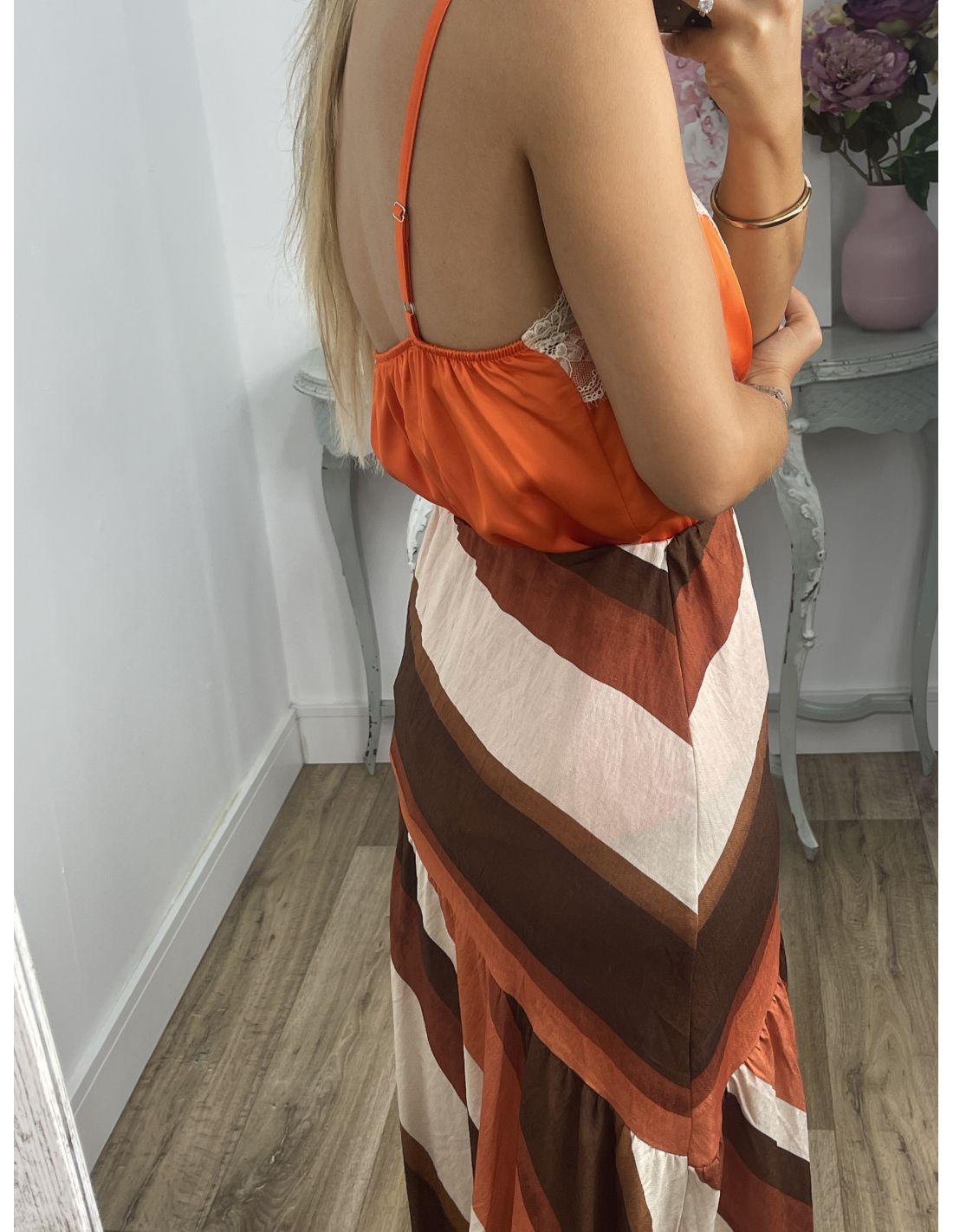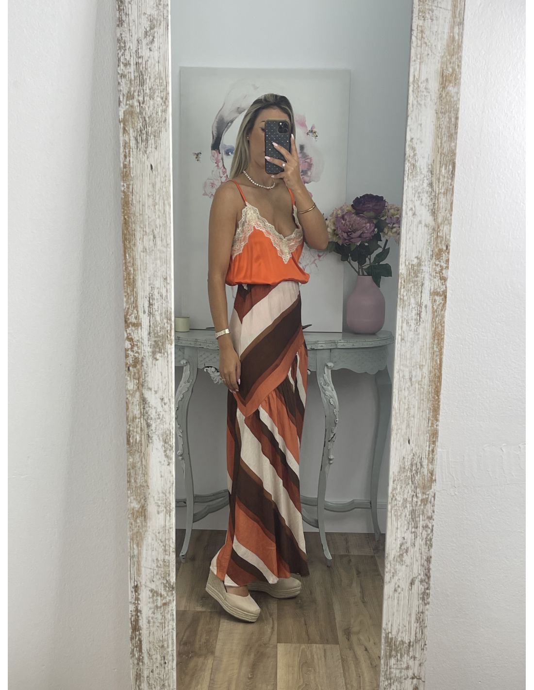Lencera de tejido satinado, con tiranta regulable y en la parte de atrás lleva goma.