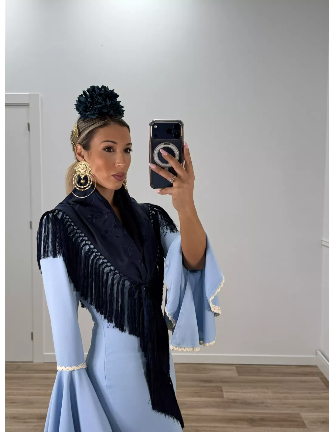 Mantón bordado unicolor azul marino oscuro