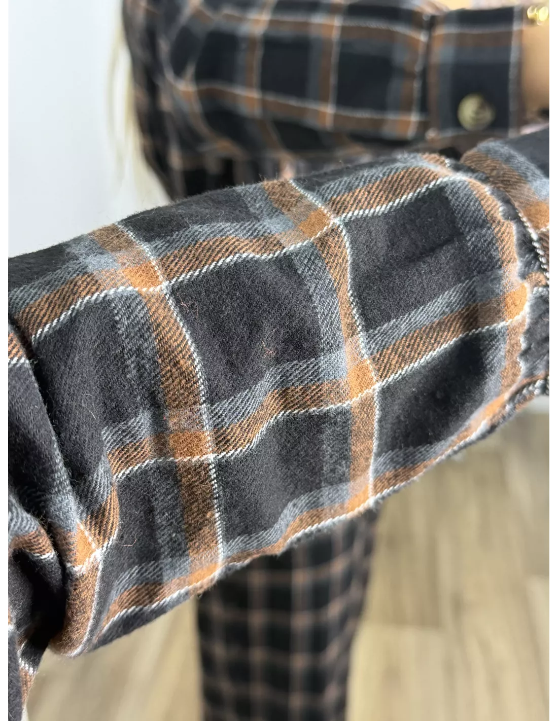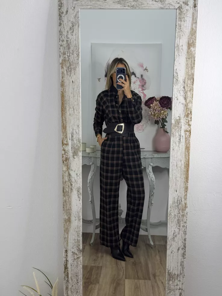 Mono de cuadros negro con línea en teja