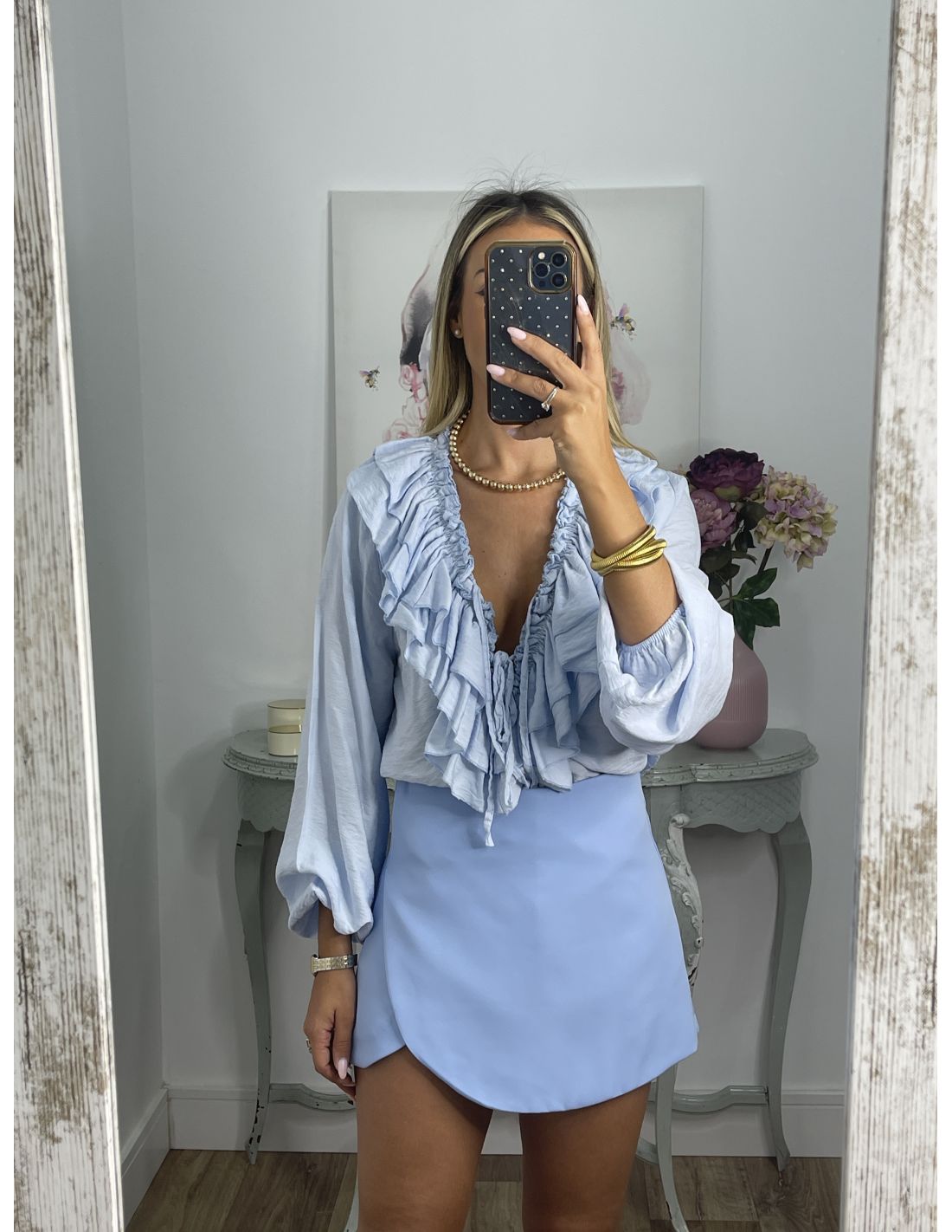 La modelo lleva puesta la talla S, ella utiliza de forma habitual la talla xs-s y mide 1,60cm