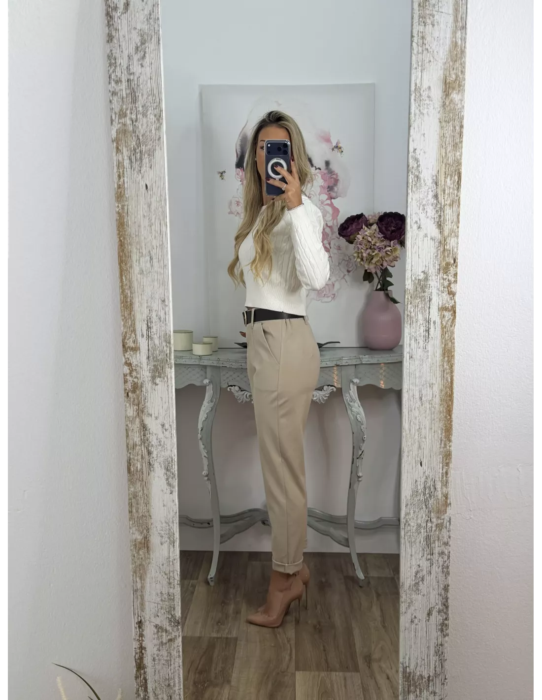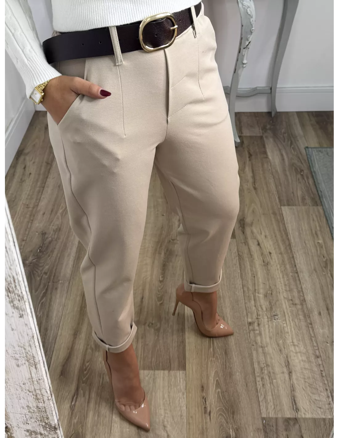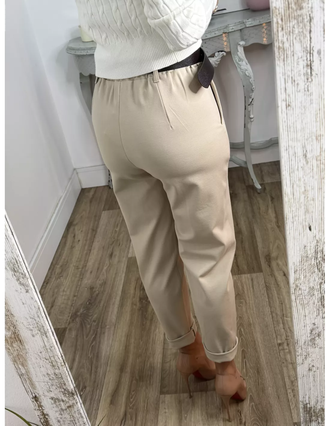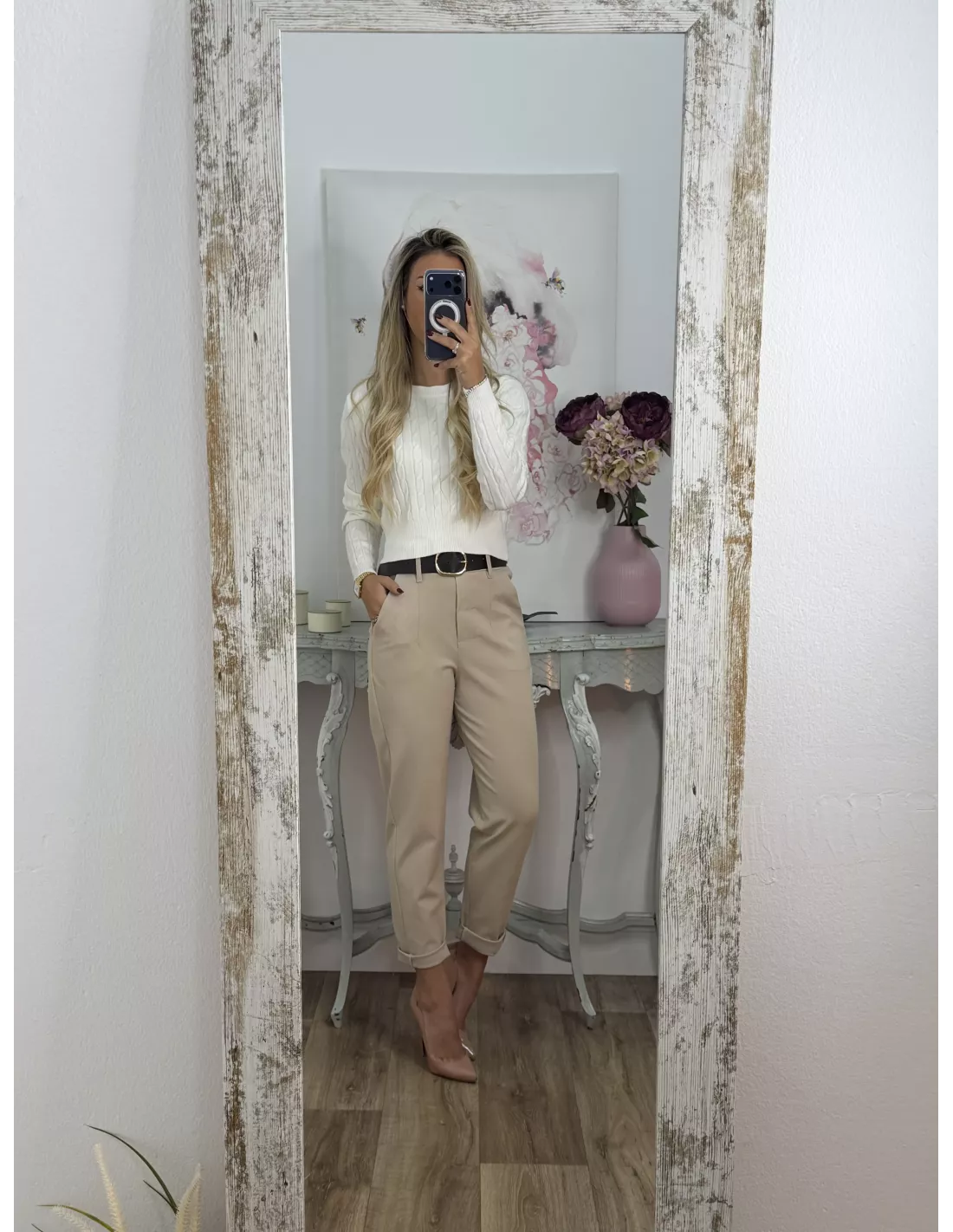 Pantalón de corte tipo Slouchy con goma en la cintura, y trae bolsillos tipo chino en la parte delantera. Tejido muy cómodo tipo algodón.