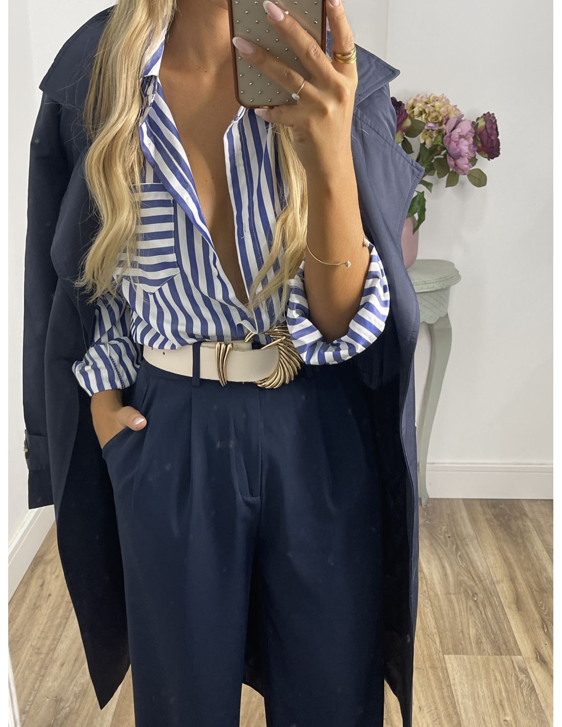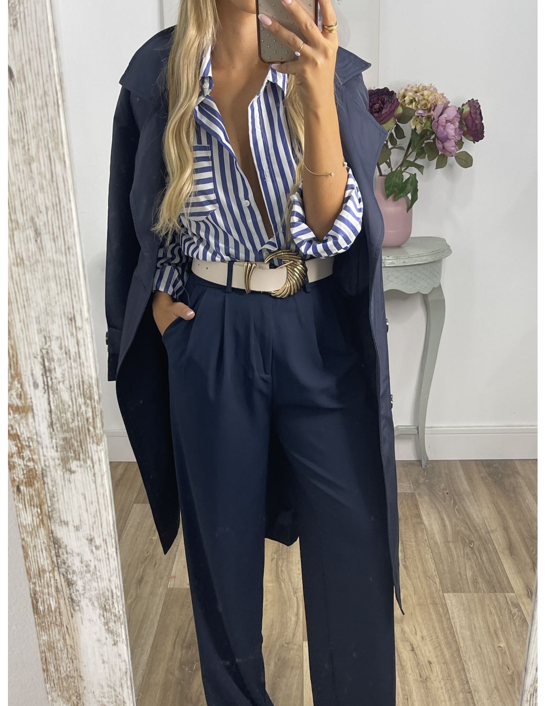 Pantalón fluido con pinzas y bolsillos tipo chino en la parte delantera. De cintura son estrechos. Tiro alto. Si estás entre dos tallas recomendamos coger la talla mayor.