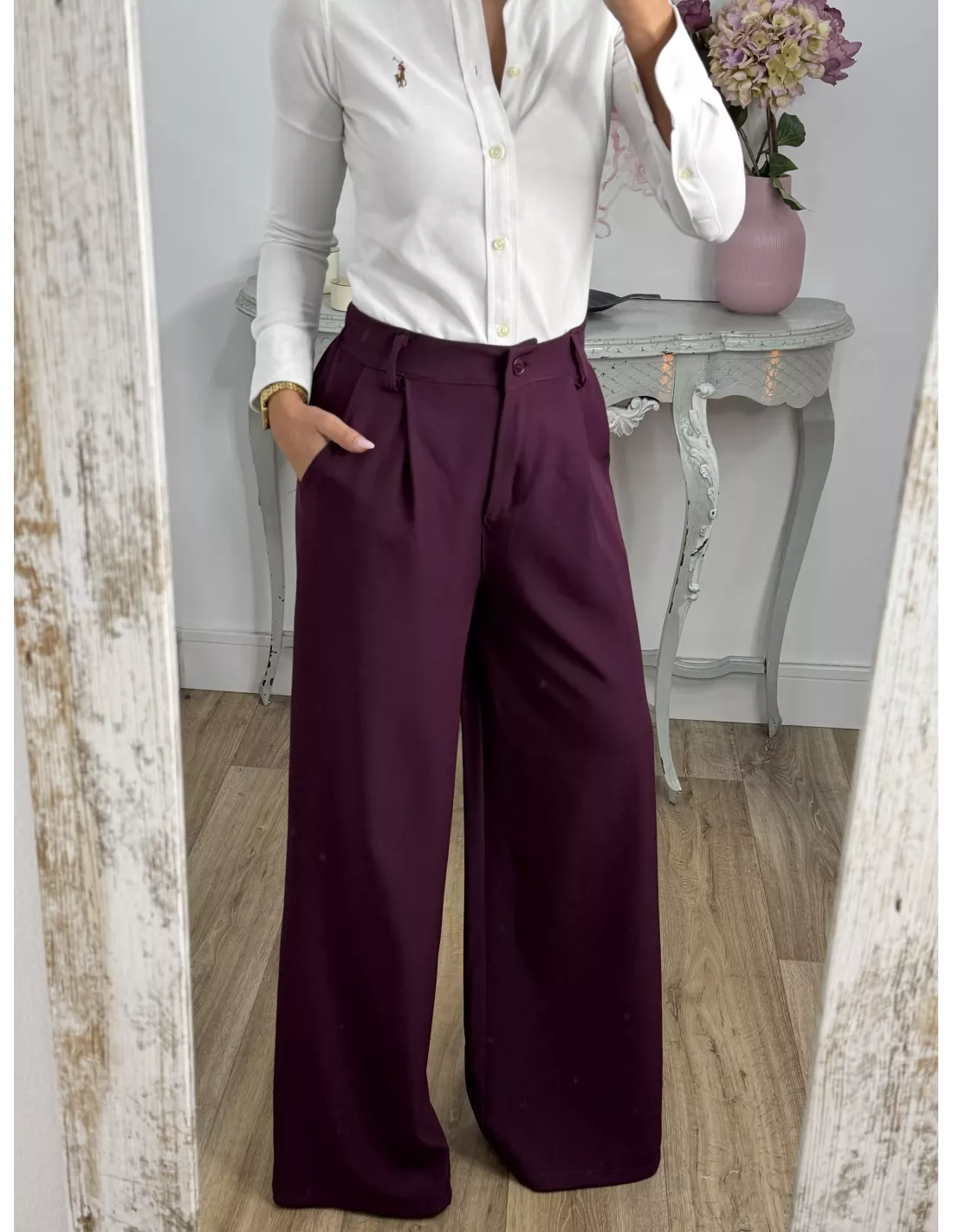 Pantalón corte masculino burdeos