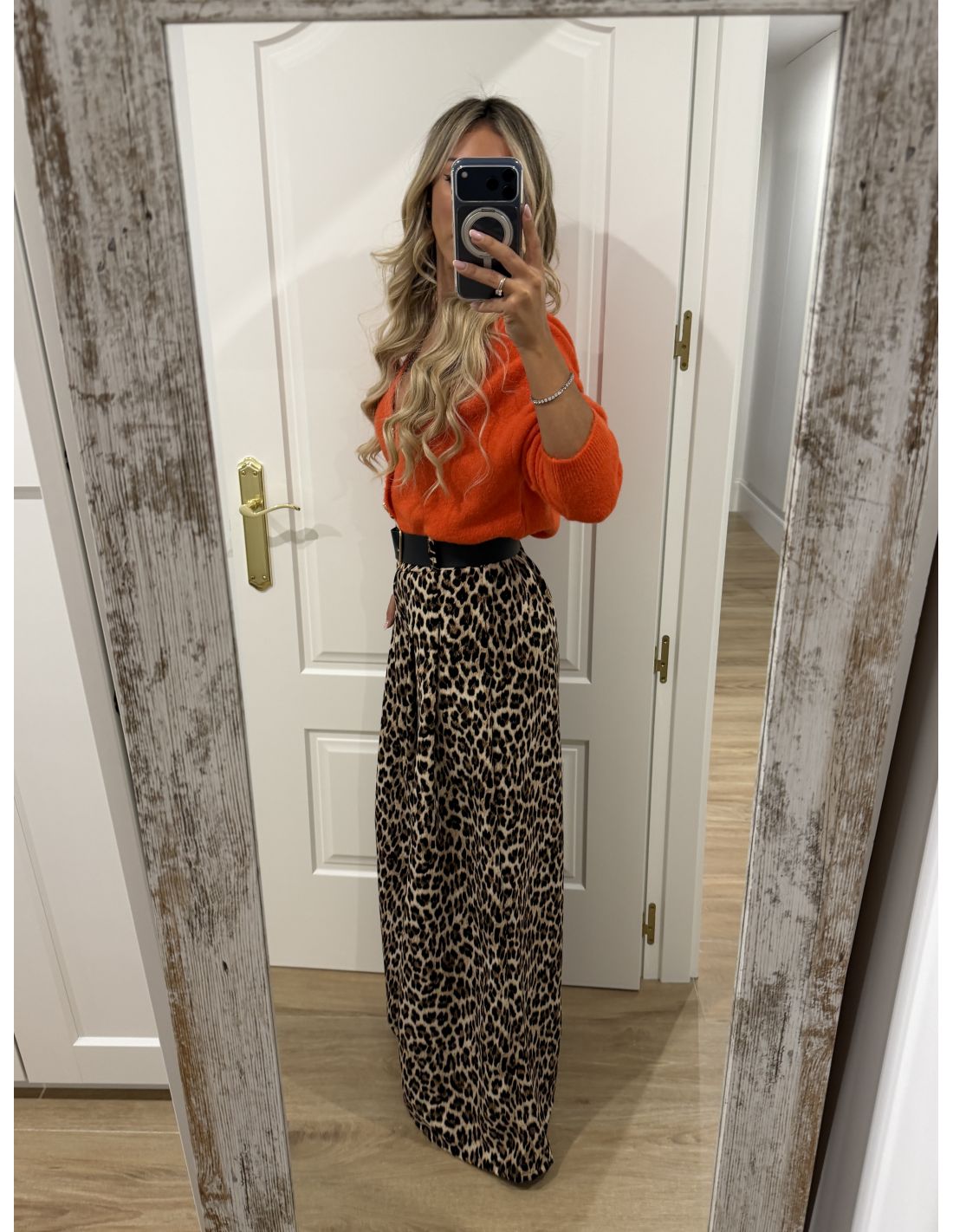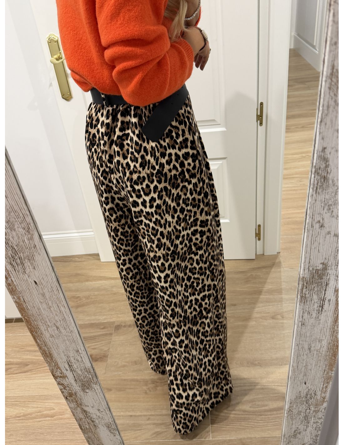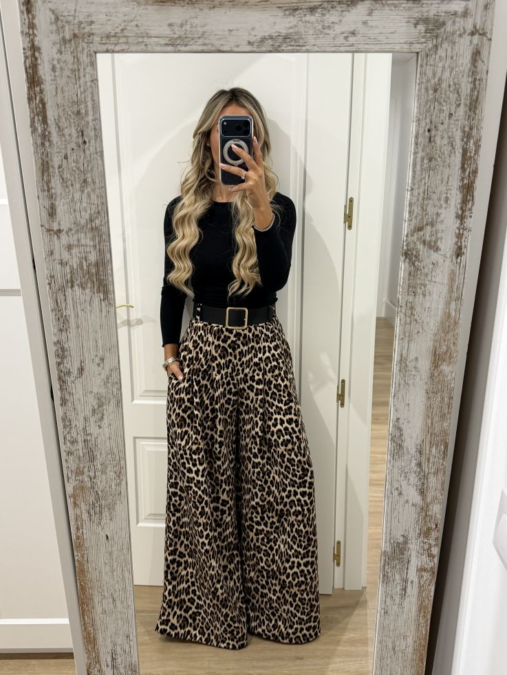 Pantalón de pinzas ancho que incluye el cinturón. El tejido es de punto grueso, no se arruga nada.