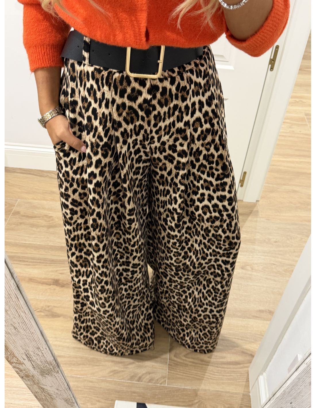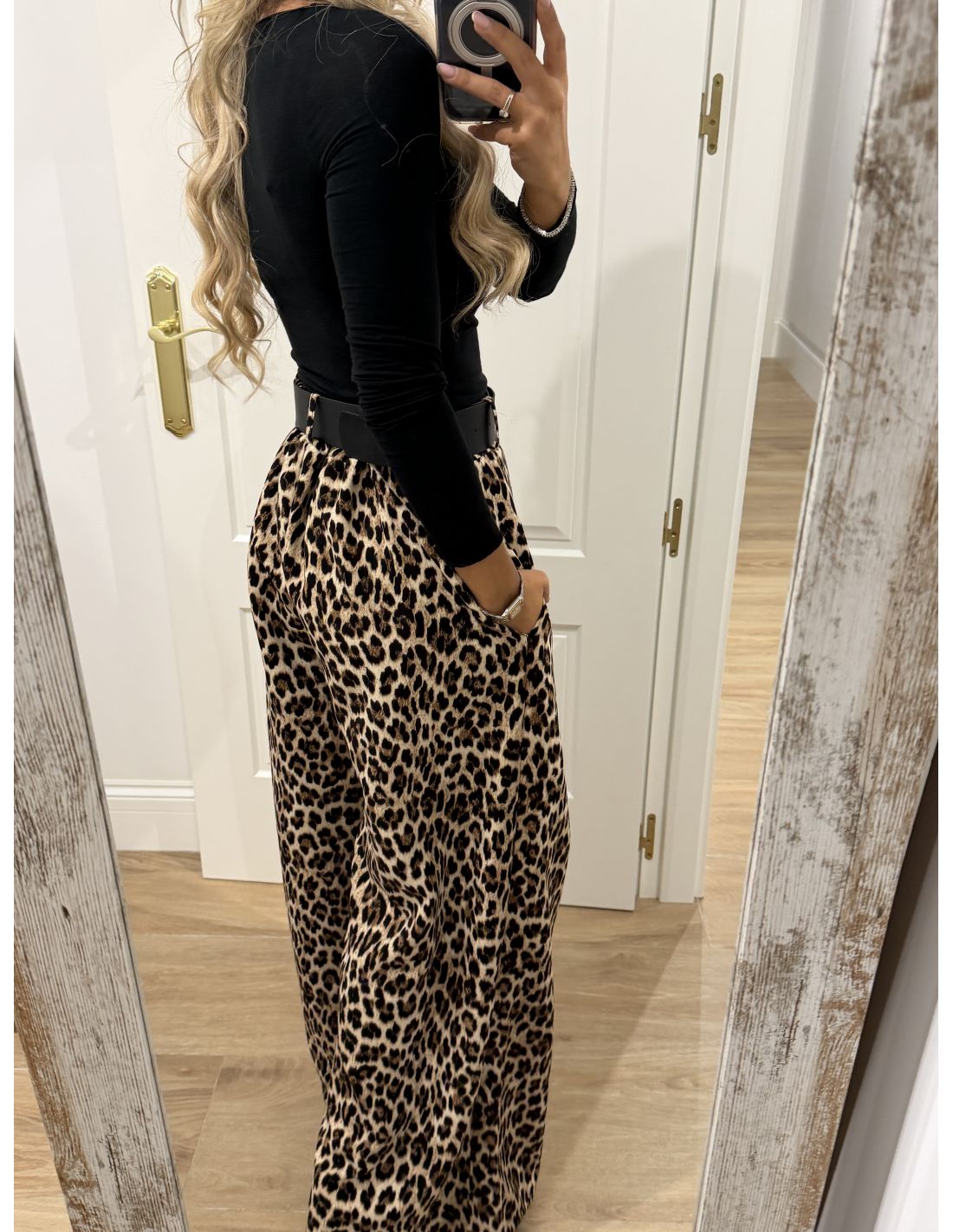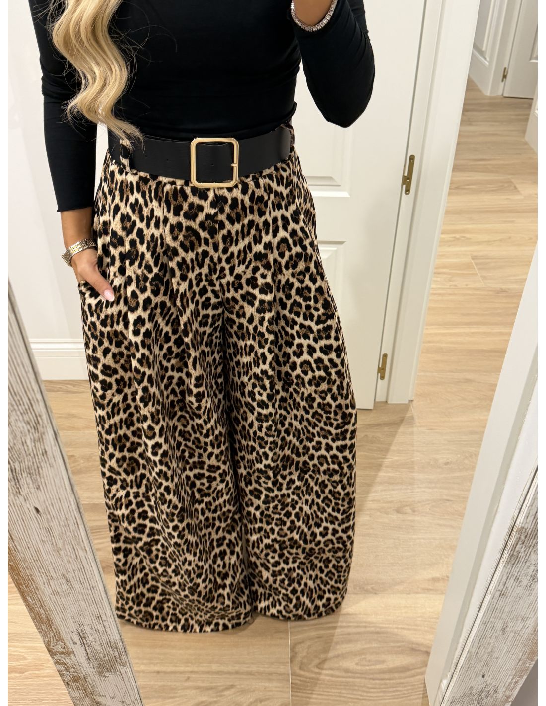 Pantalón de pinzas ancho que incluye el cinturón. El tejido es de punto grueso, no se arruga nada.
