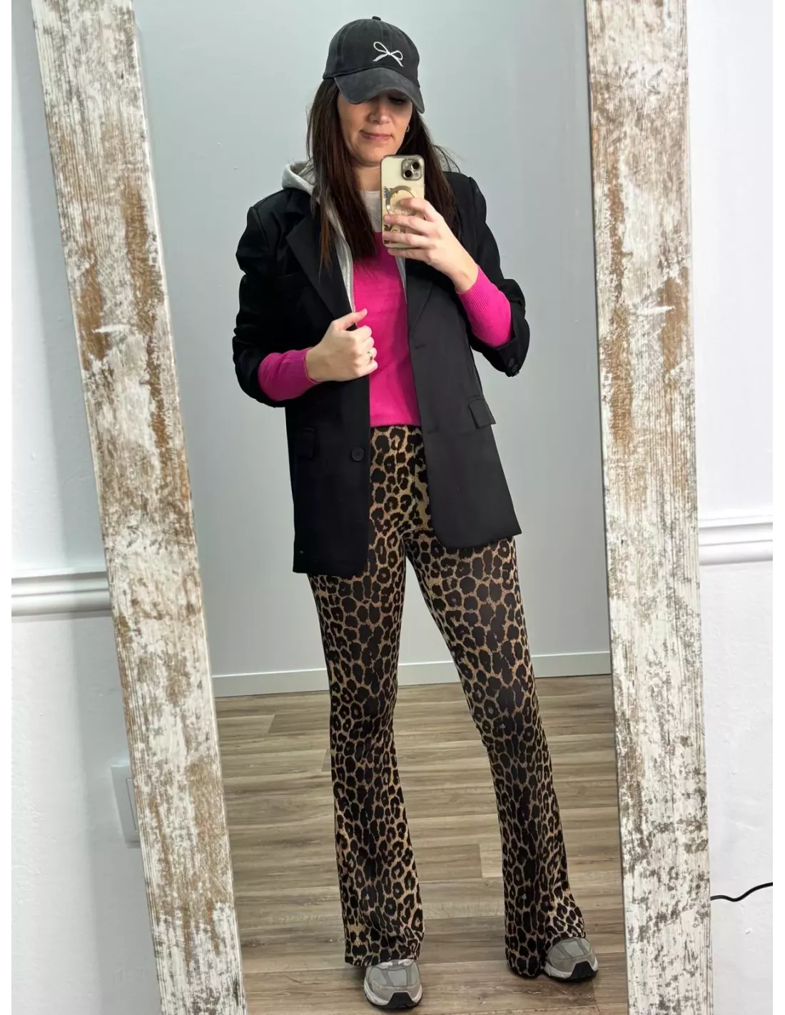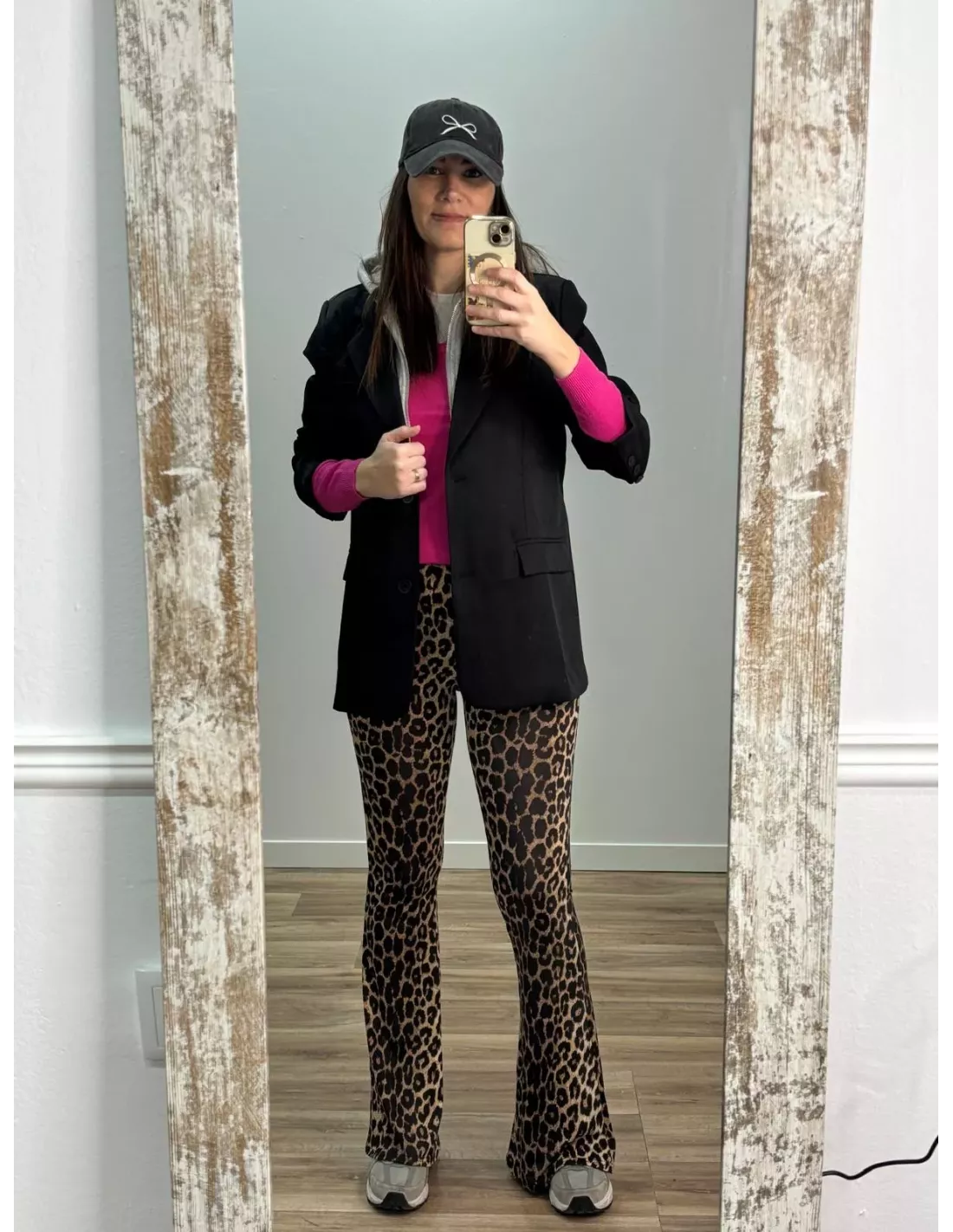 Pantalón de Animal, print de corte acampanado. El tejido es un punto de seda o licra fría no se arruga nada y no se transparenta. Sienta muy bien. Es de tiro alto.