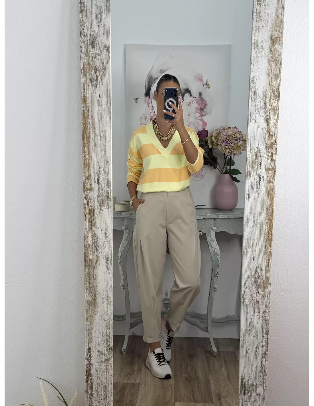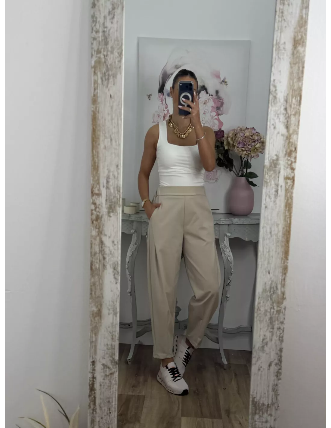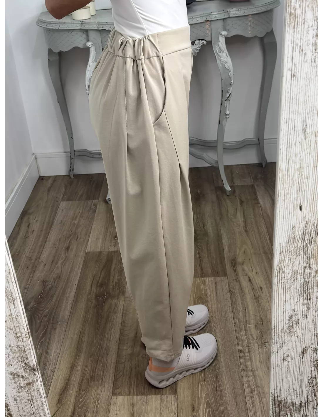 Pantalón de corte tipo jogger. Lleva goma en la cintura. Tejido de punto muy cómodo. Lleva un bolsillo en la parte de atrás.