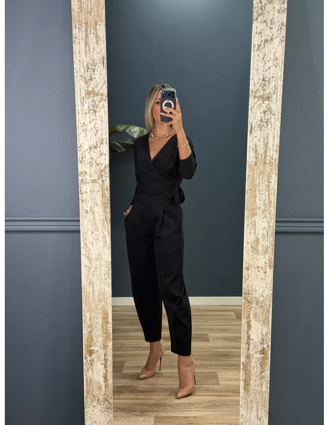 Medidas: cintura 33 cm, cadera 51,5 cm, largo 89,5 cm