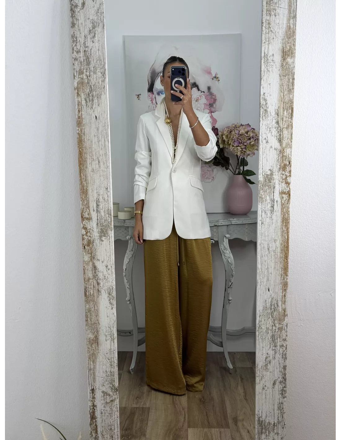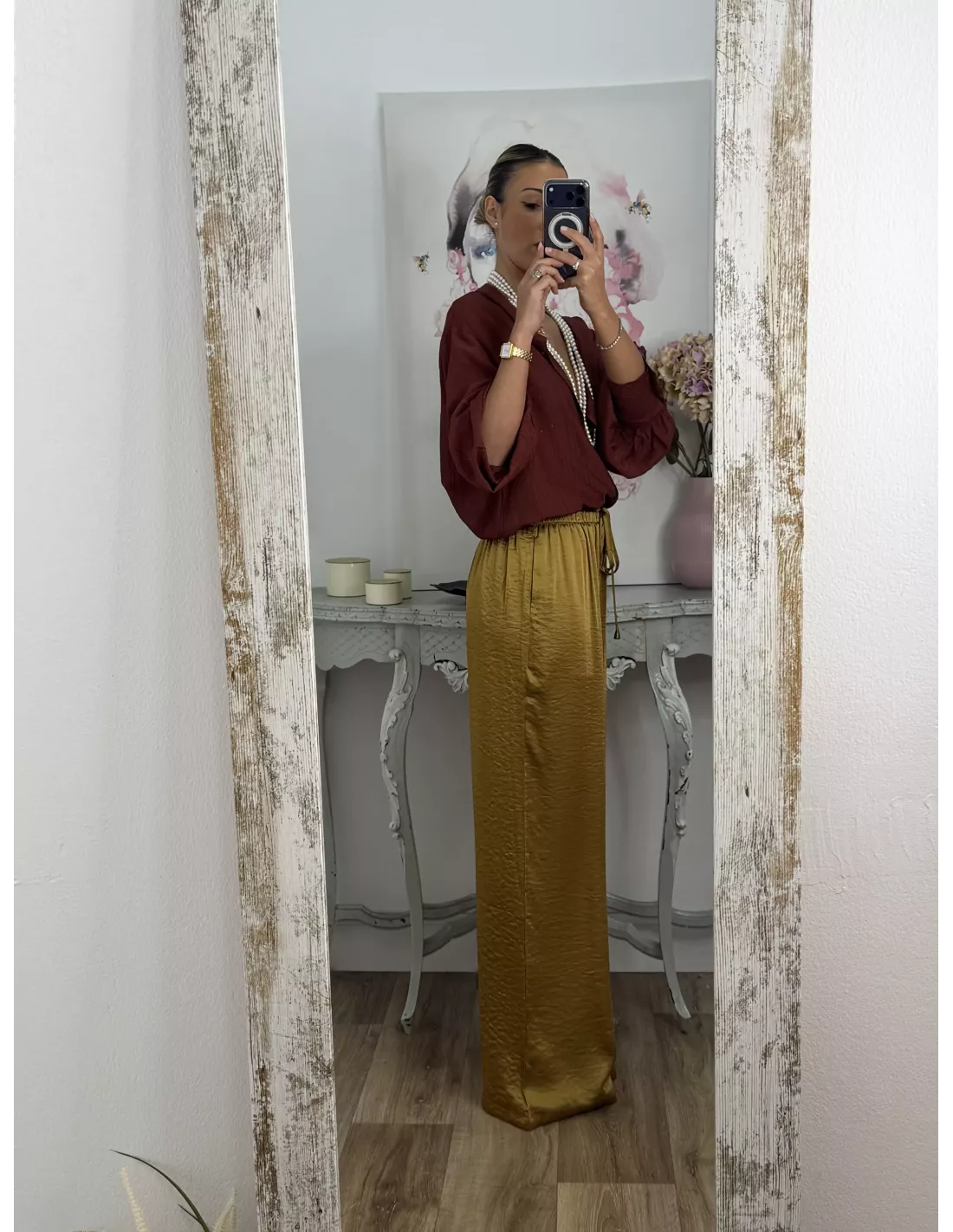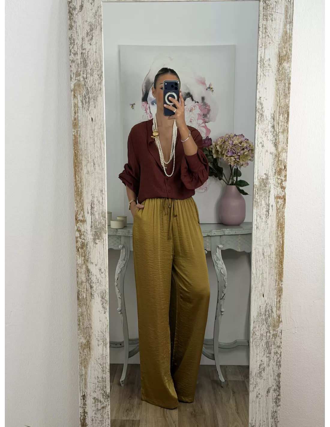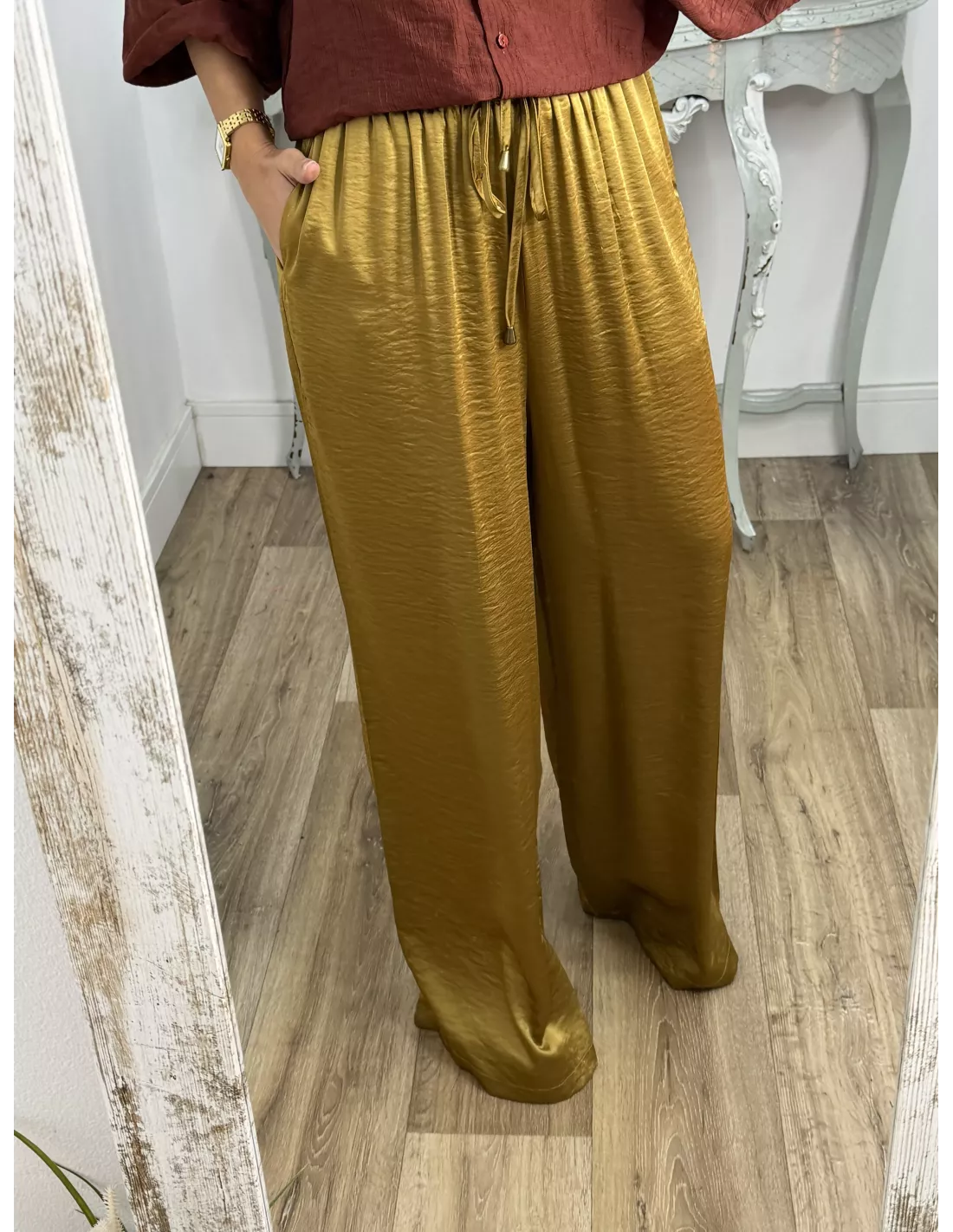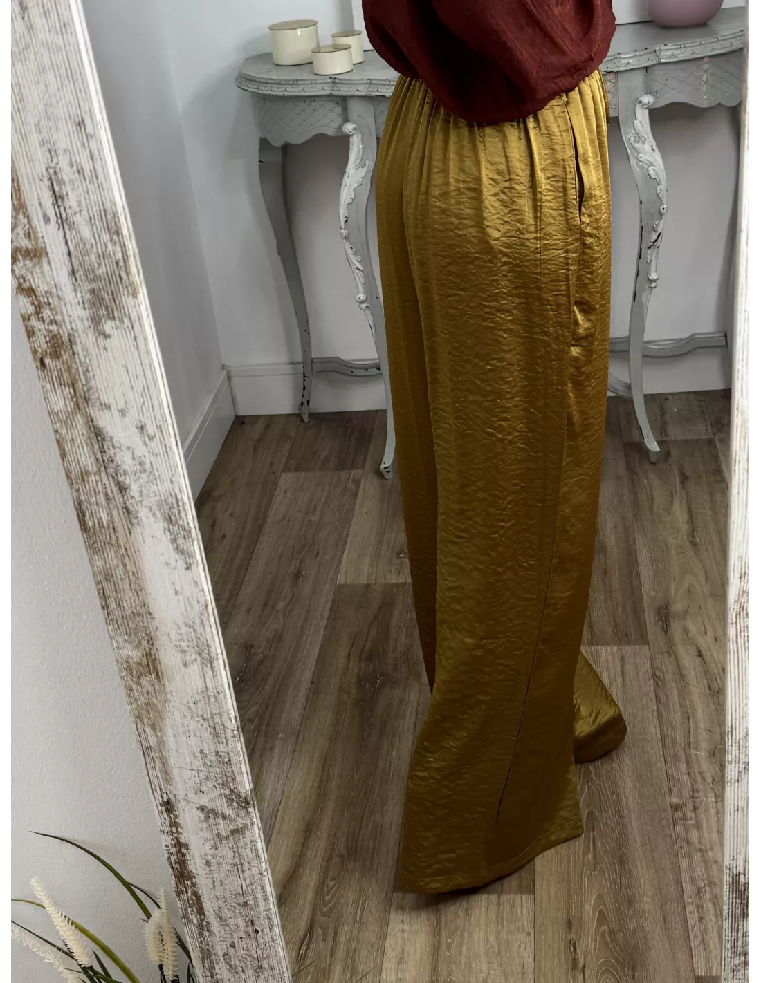 Jeans de tejido tipo raso. con goma en la cintura de corte suelto.