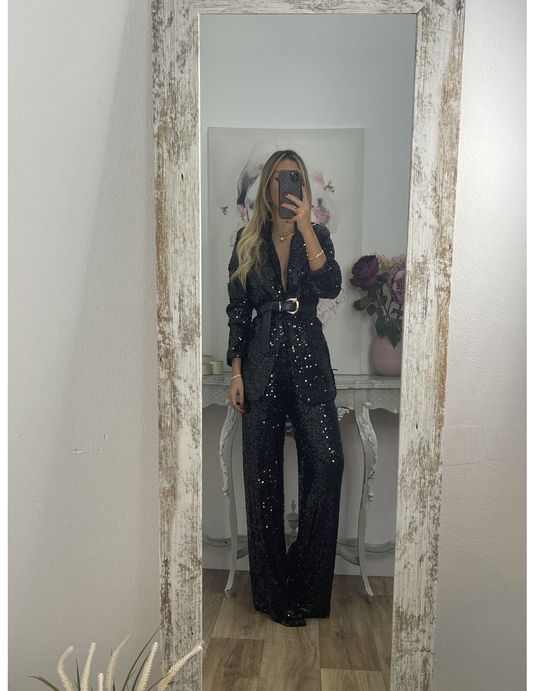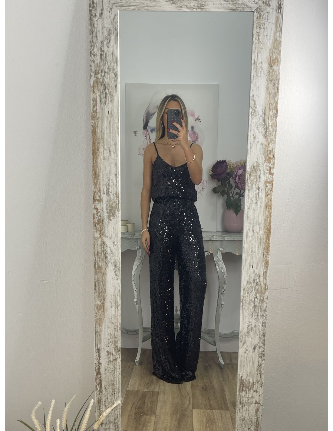 Pantalón Palazzo negro de lentejuelas