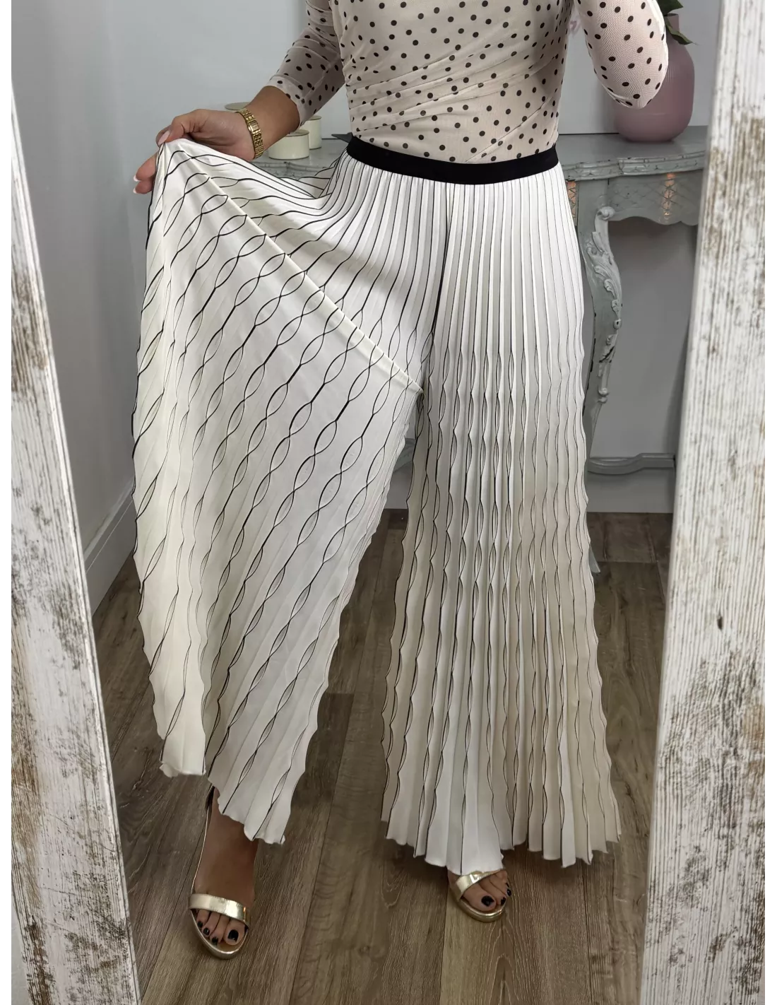 Pantalón plisado hueso y negro
