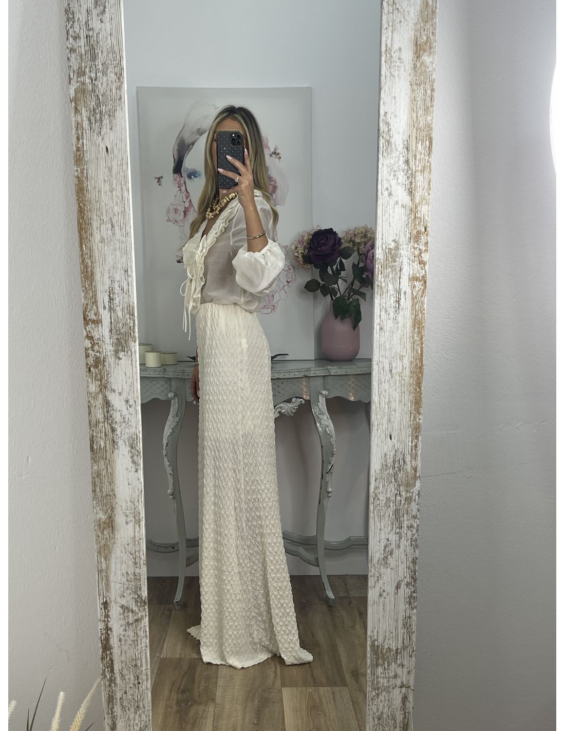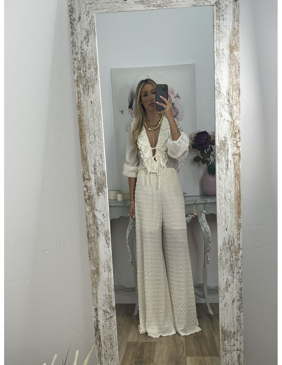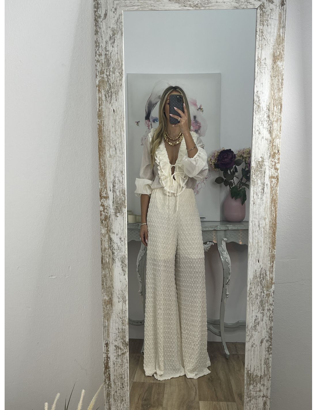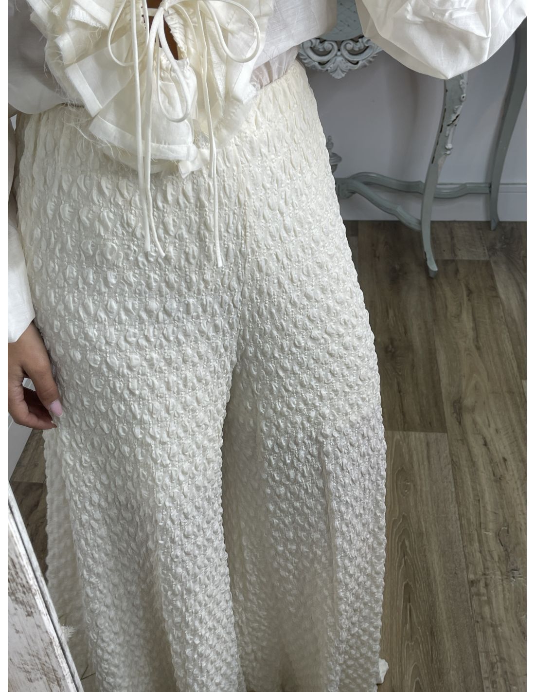 Pantalón tejido punto rugoso hueso