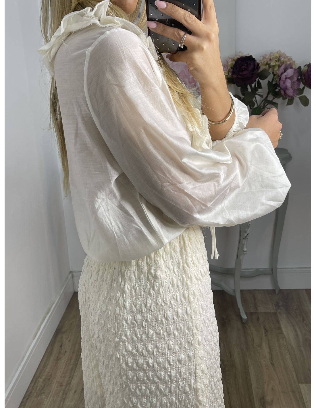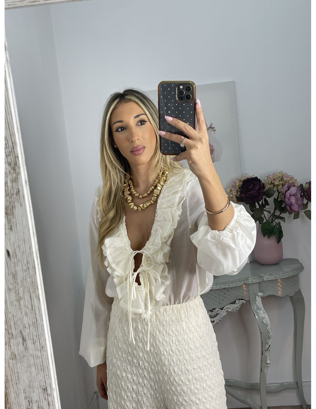 Medidas: cintura 36cm sin estirar, cadera 56cm, largo 110cm