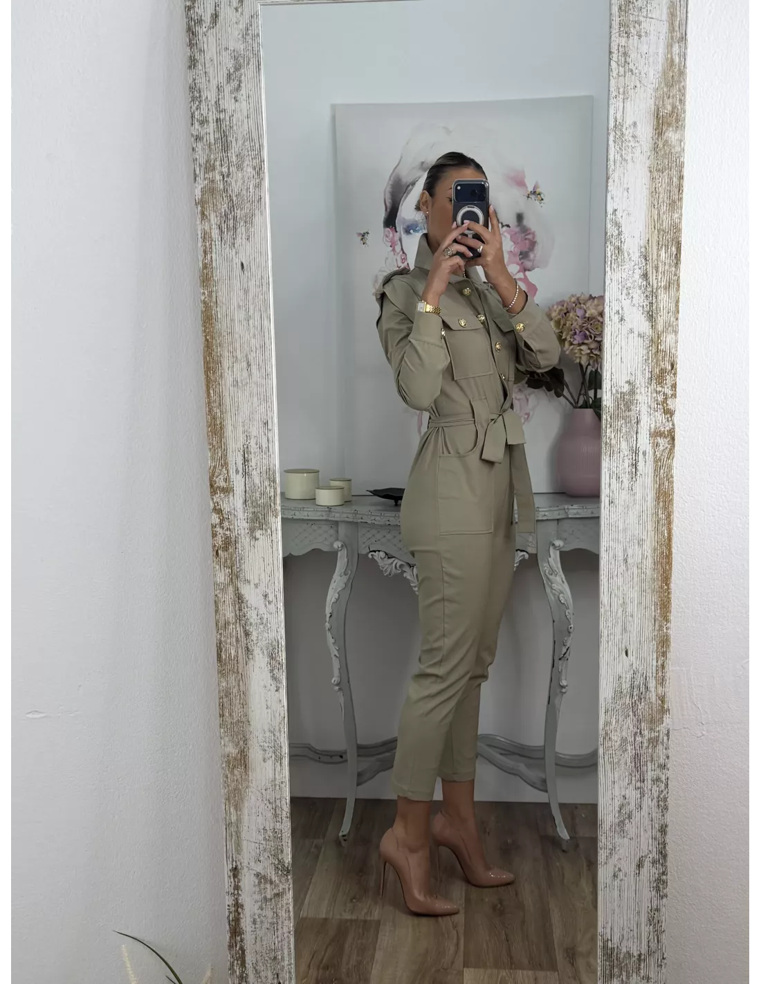 Mono elástico de tejido vaquero. Los botones son dorados. Trae cinturón del mismo tejido. !Ojo no indicado para chicas altas!