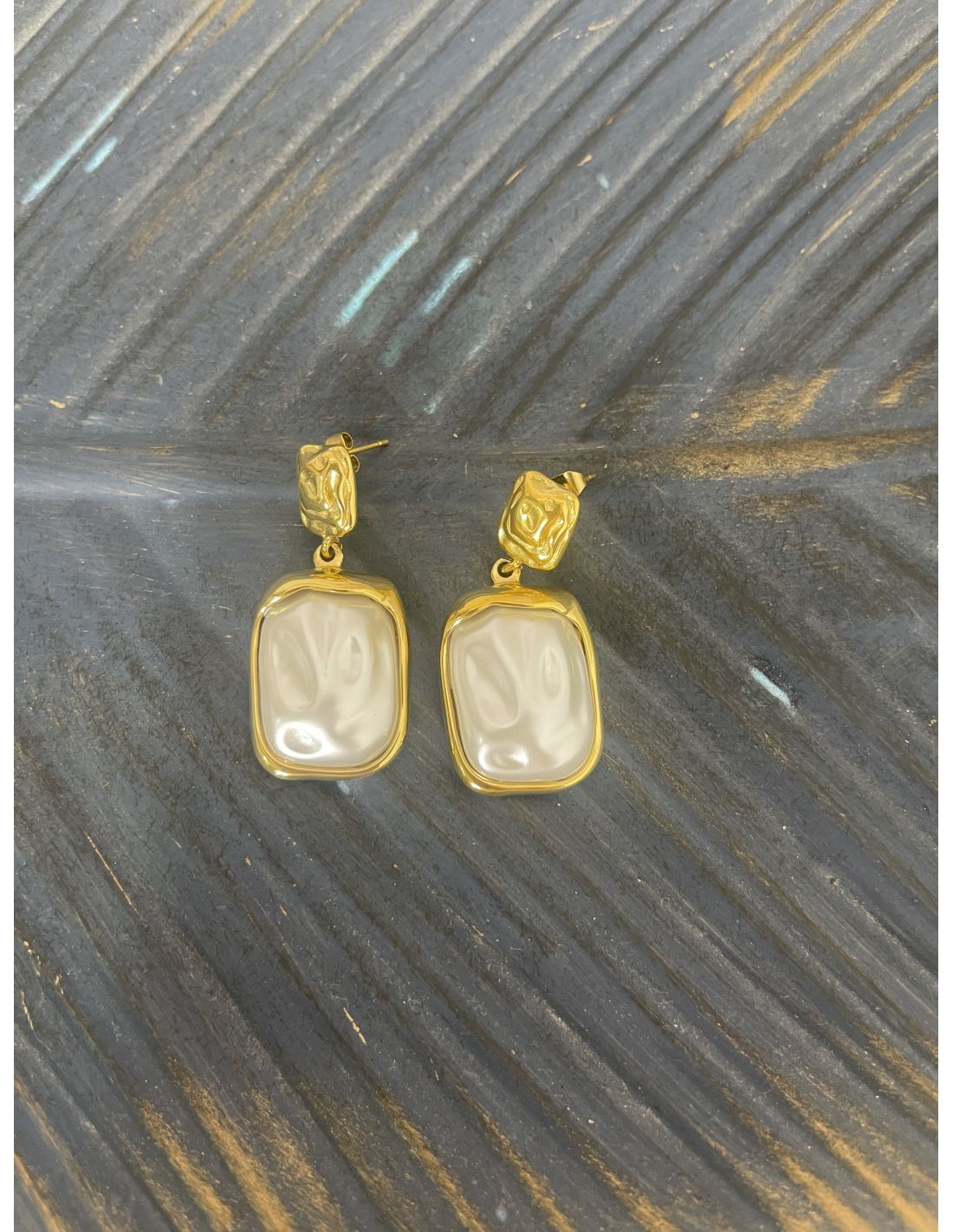 Pendientes dorados con piedra nacarada . No pesan. Se cierra con una tuerca normal.