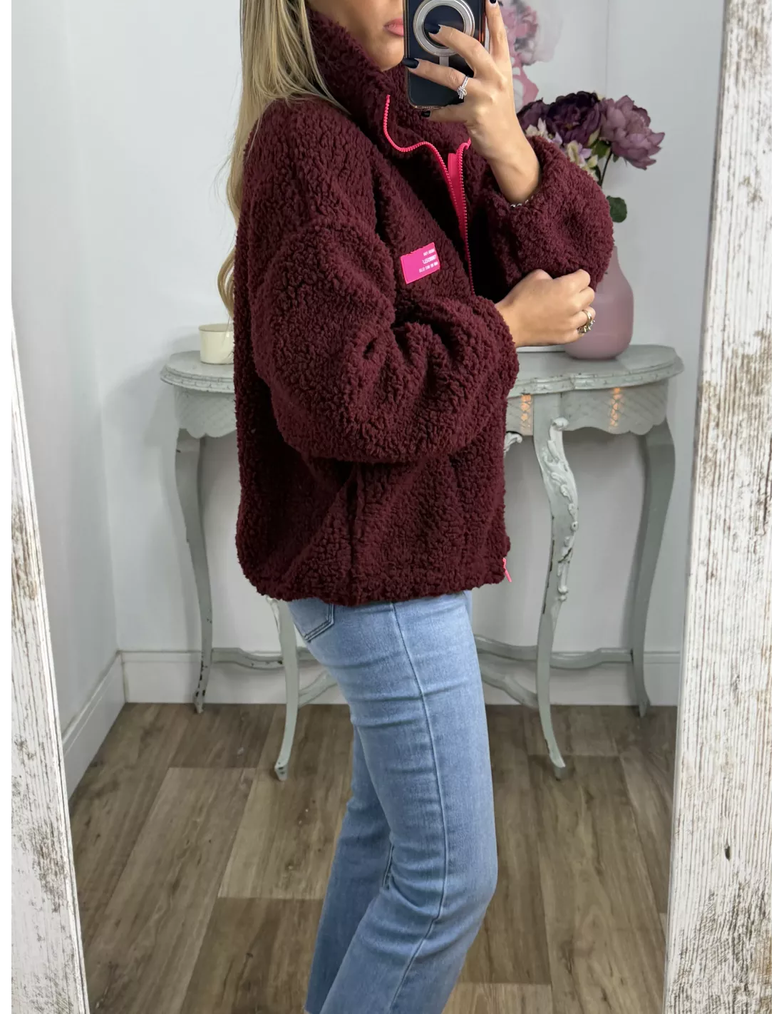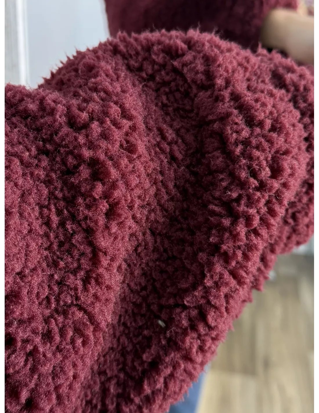 Polar que se cierra con cremallera. Lleva goma en los puños y en la parte de abajo que es efecto globo. No va forrado.