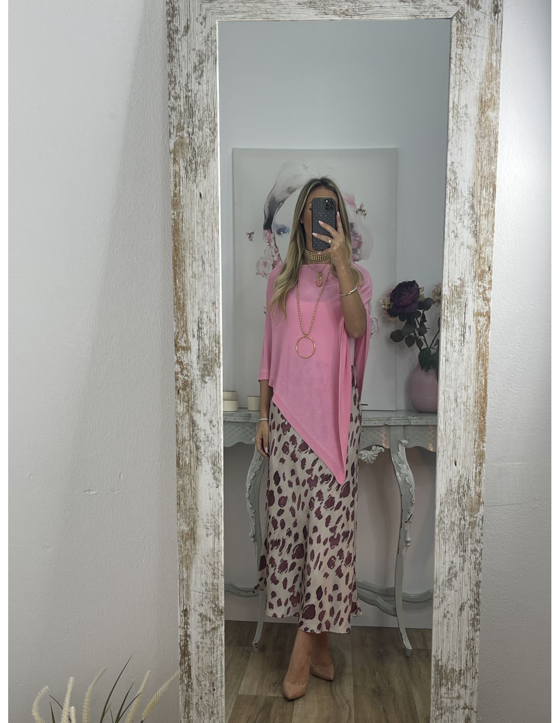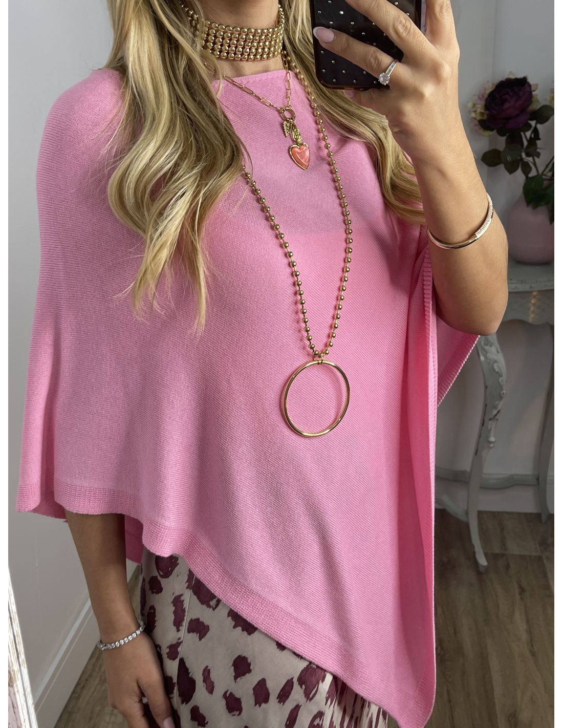 Poncho de punto rosa