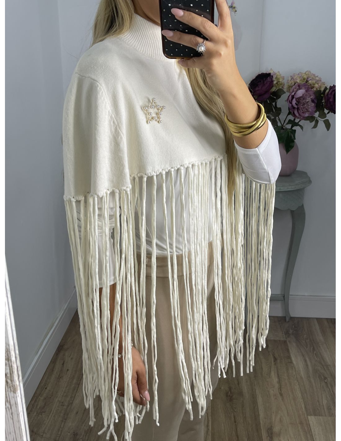 Poncho flecos hueso