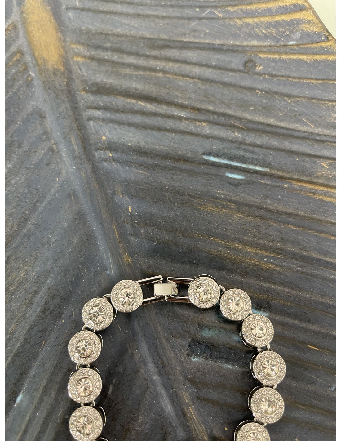 Pulsera plateada con brillantes.