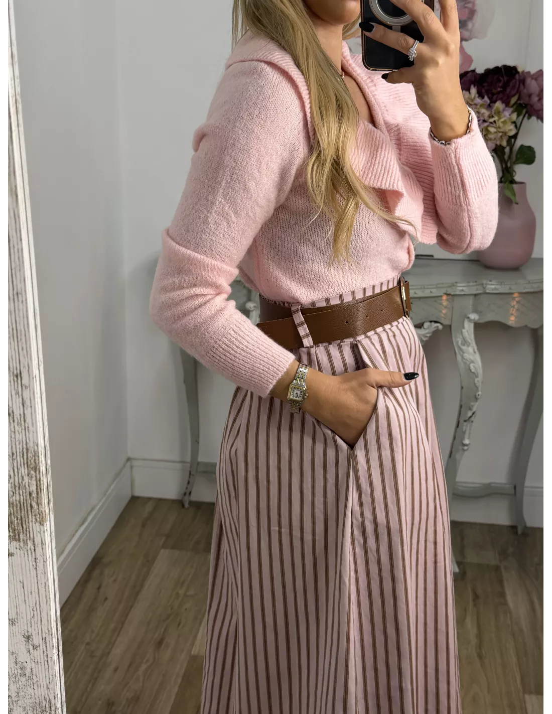 Rebeca de punto abotonada, de tacto muy suave. No pica nada. Lleva volante a modo de babero.