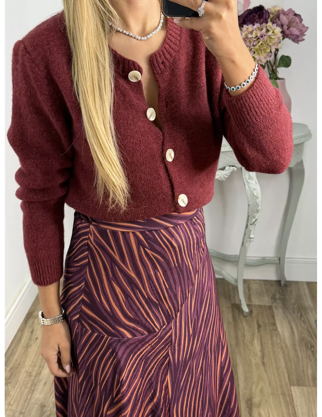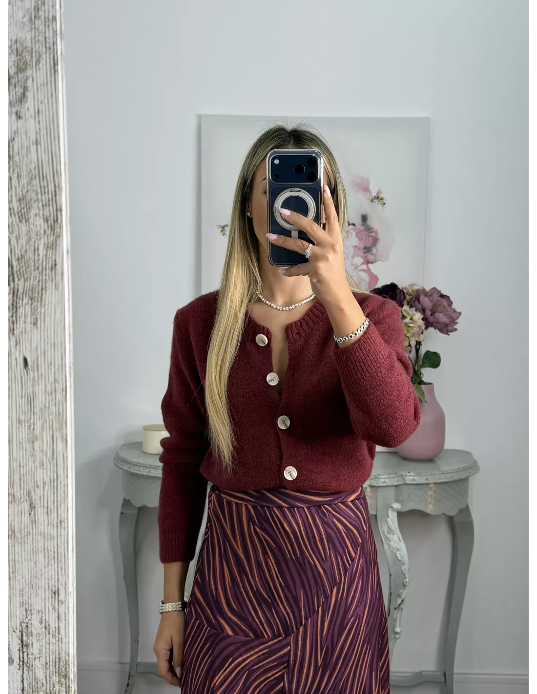 Rebeca de punto abotonada, de tacto muy suave. No pica nada.