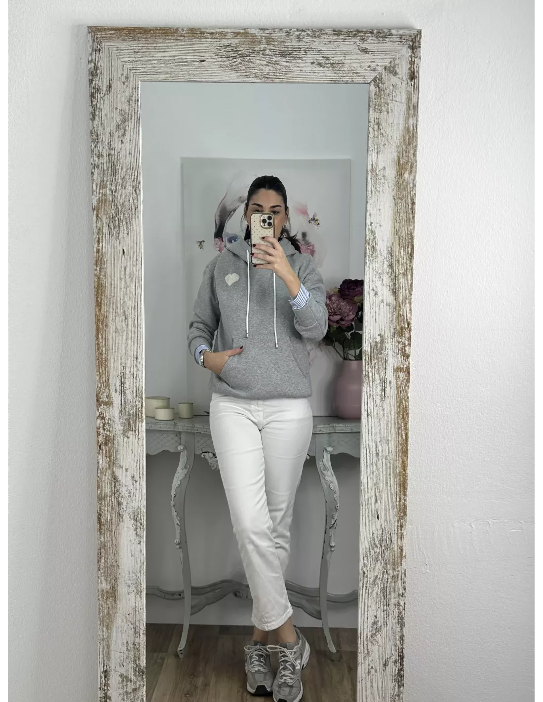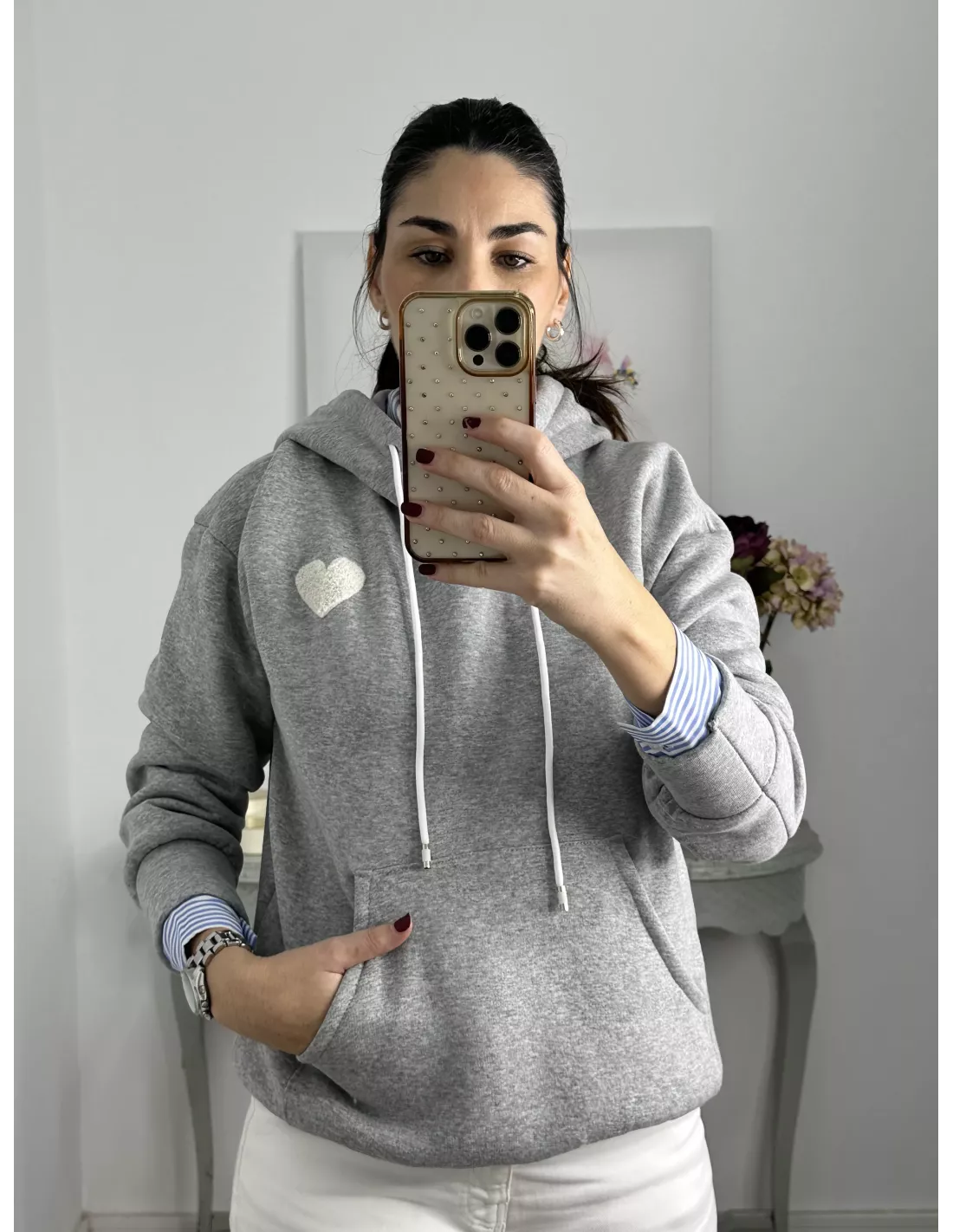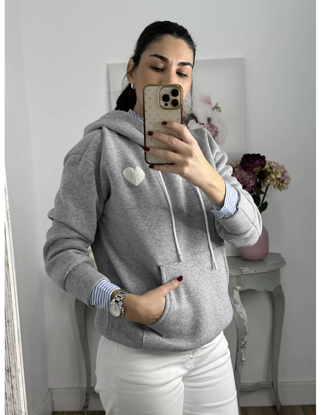 Sudadera gris capucha con corazón