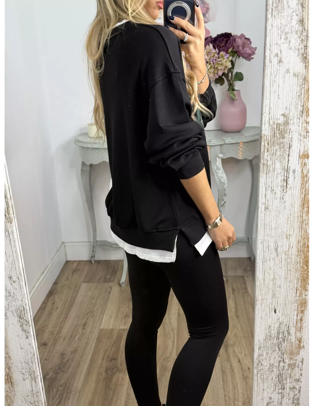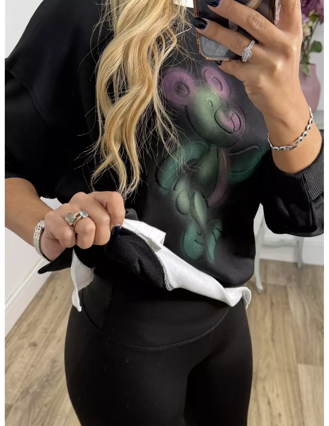 Sudadera de cuello a la caja con el dibujo de un oso en relieve. Simula como si llevara una camiseta debajo.
