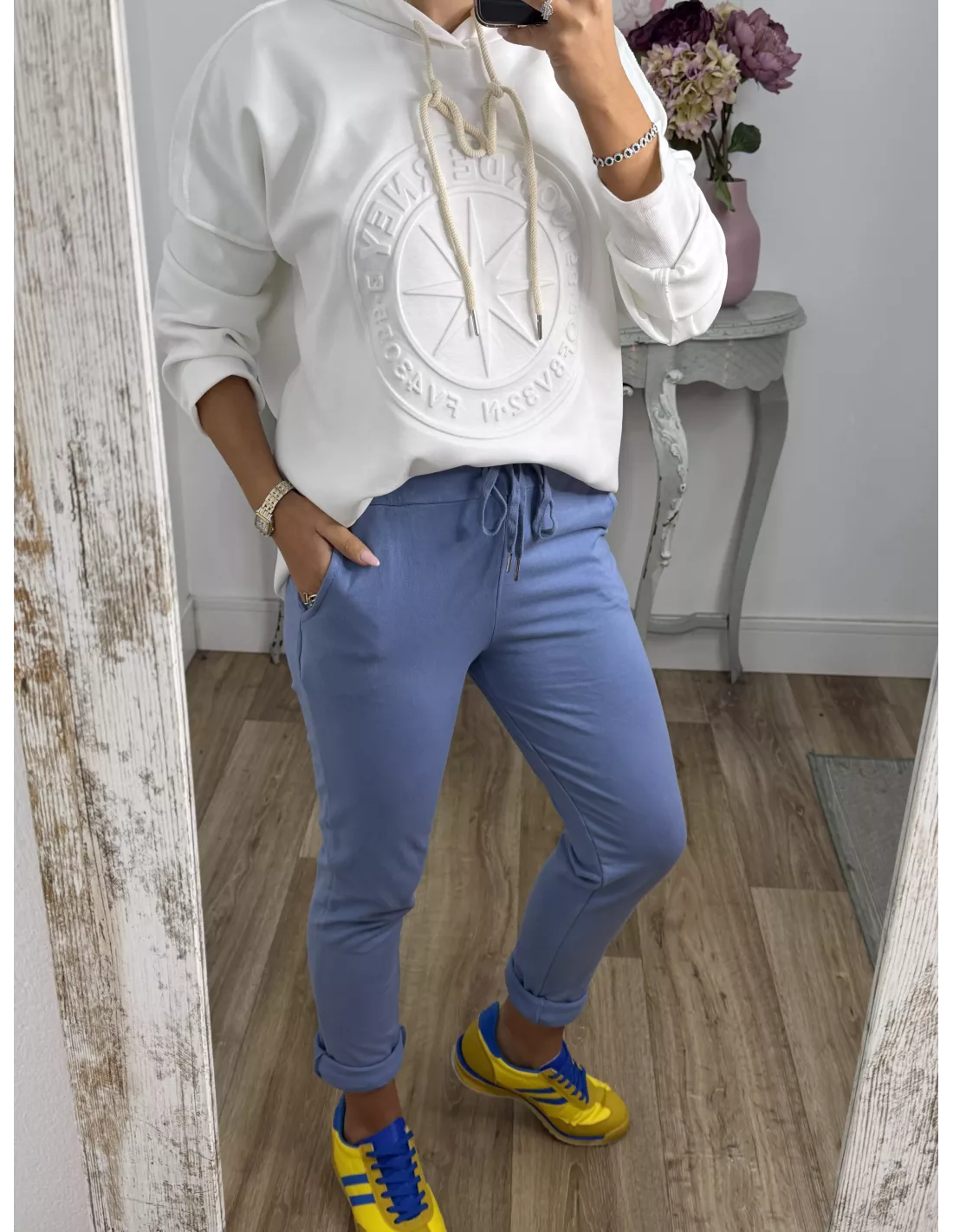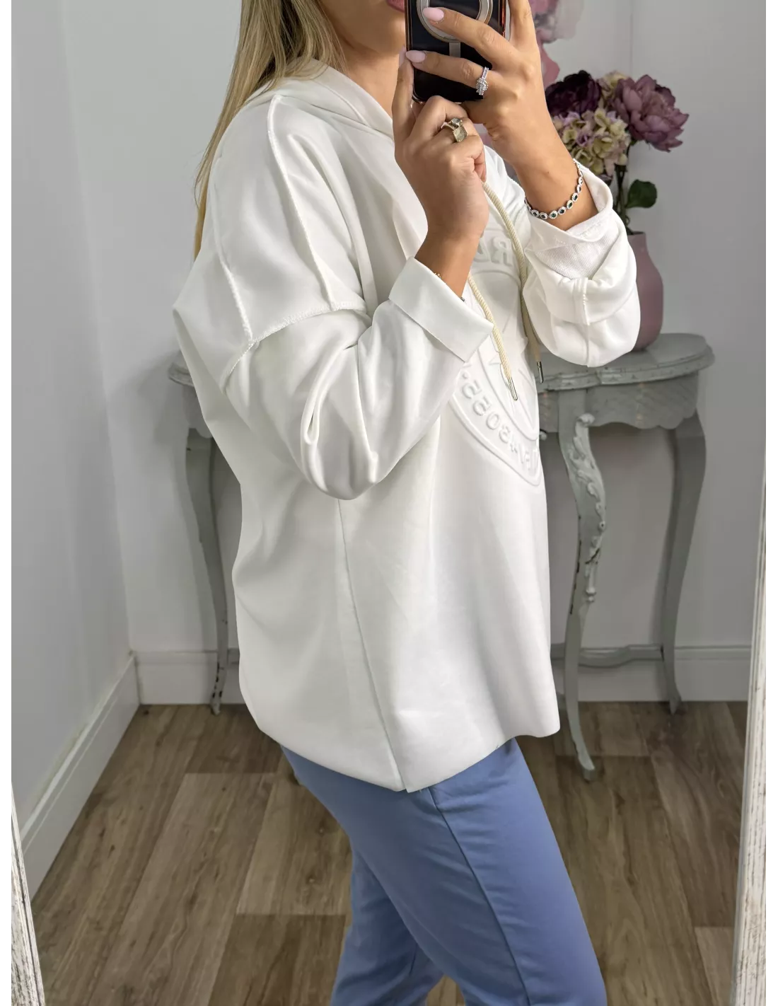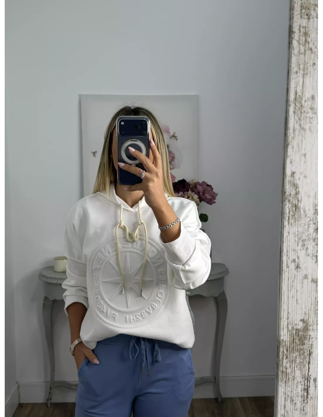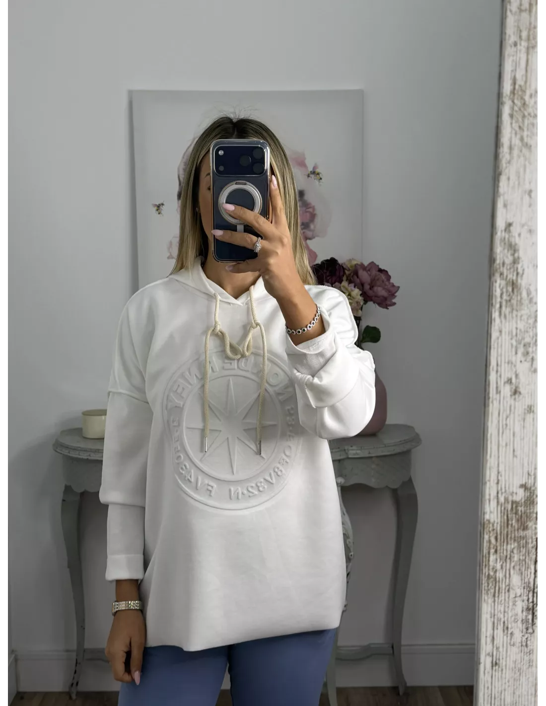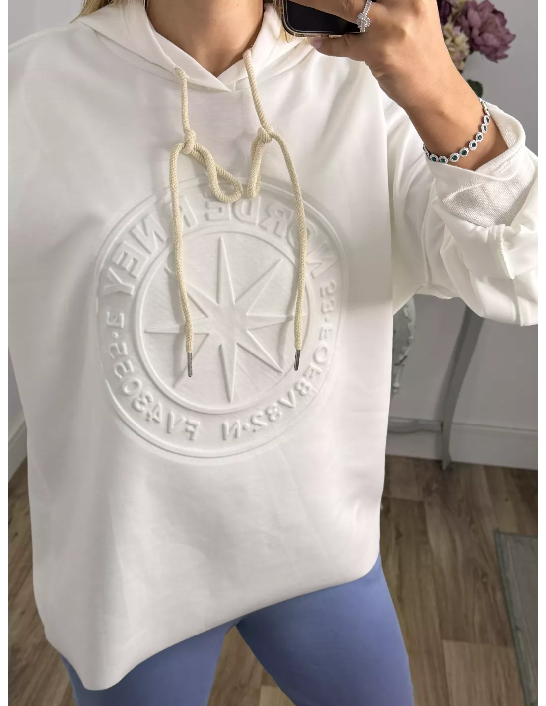 Sudadera de tejido tipo neopreno, de corte suelto. Lleva un dibujo de una estrella en el centro. Tiene capucha.