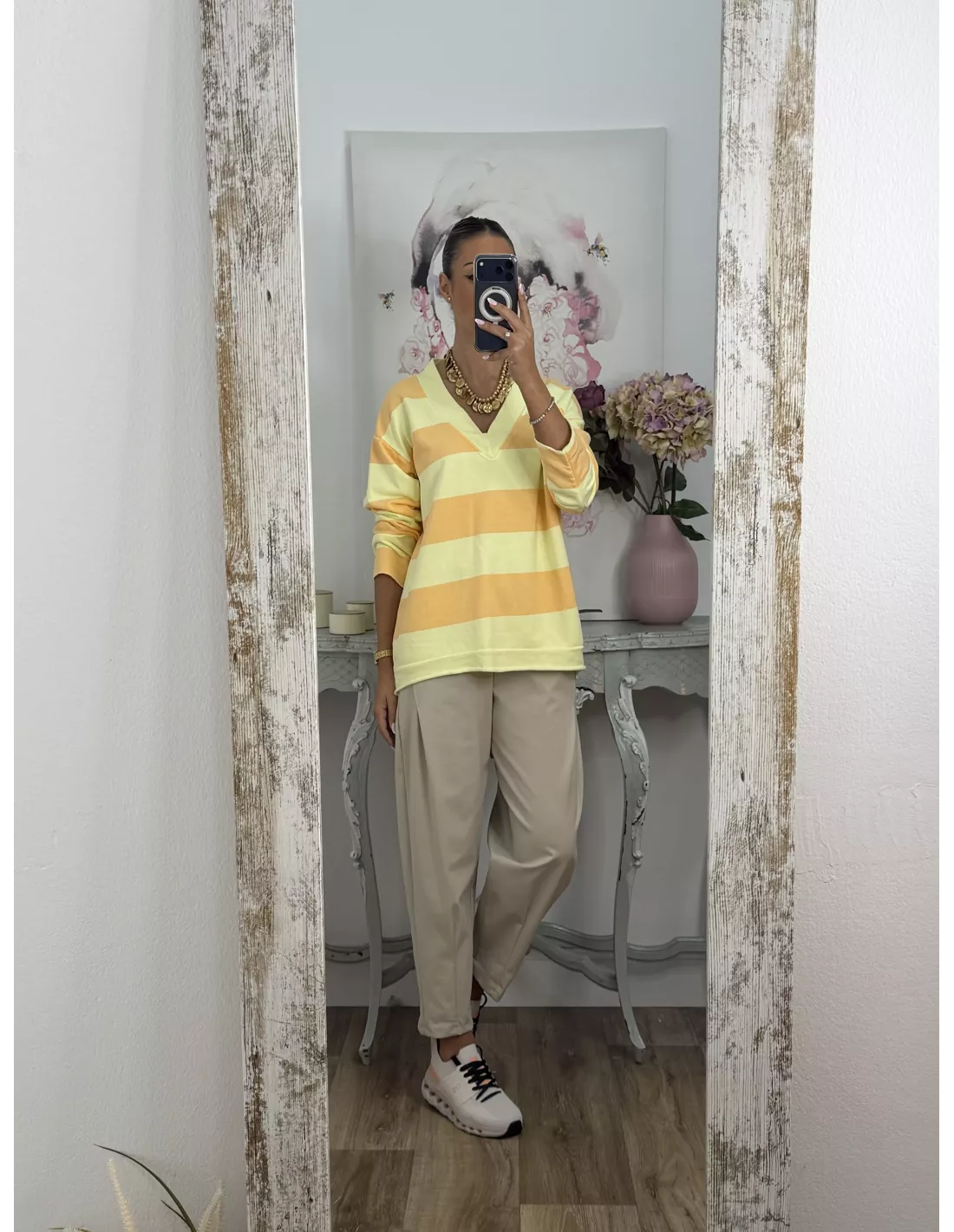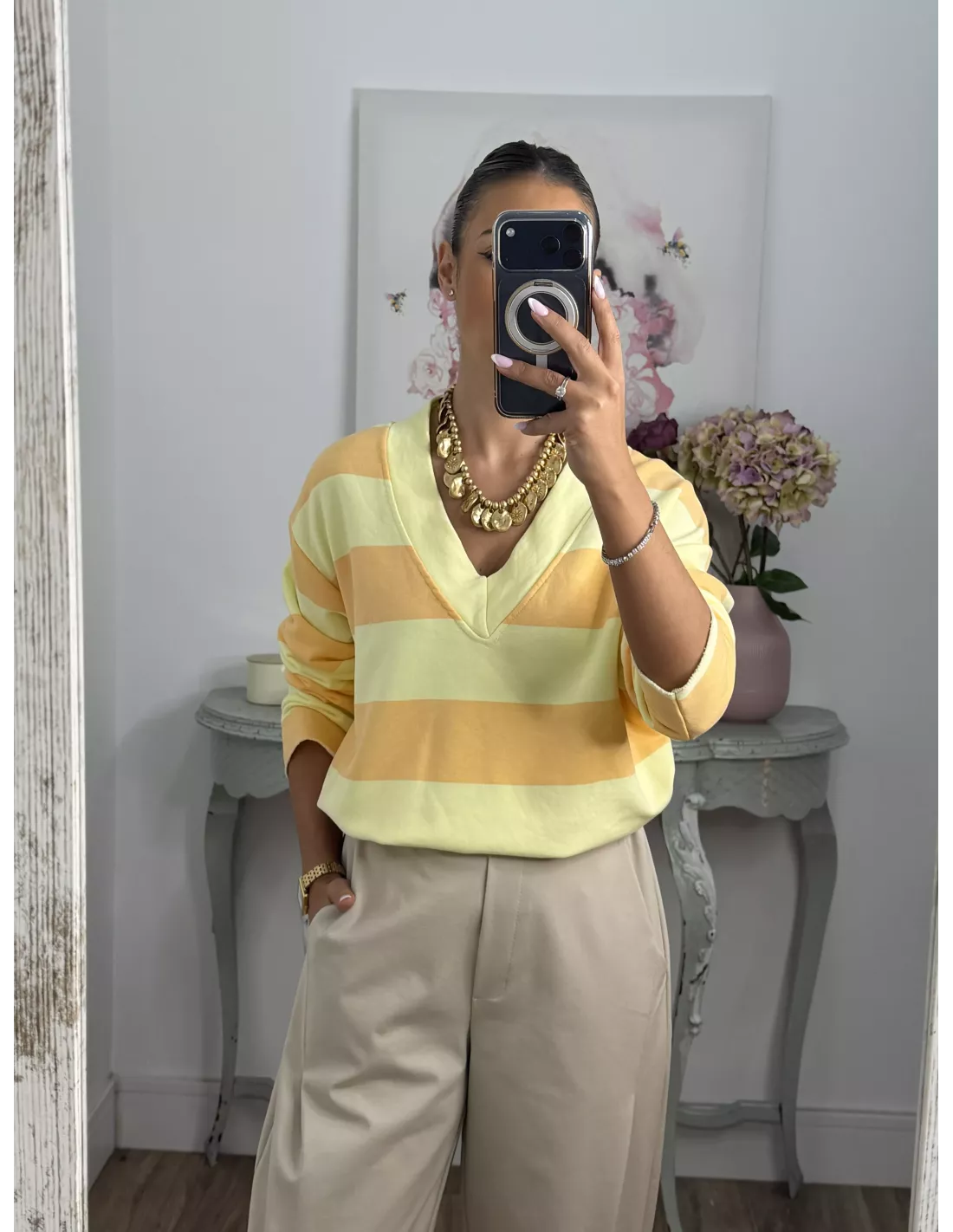 Sudadera Rayas amarilla y naranja pastel