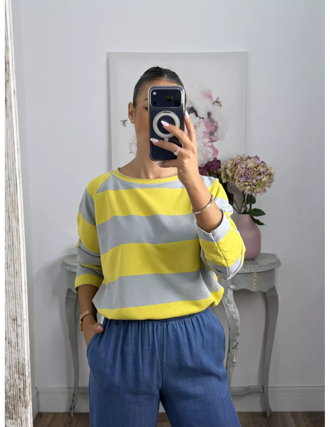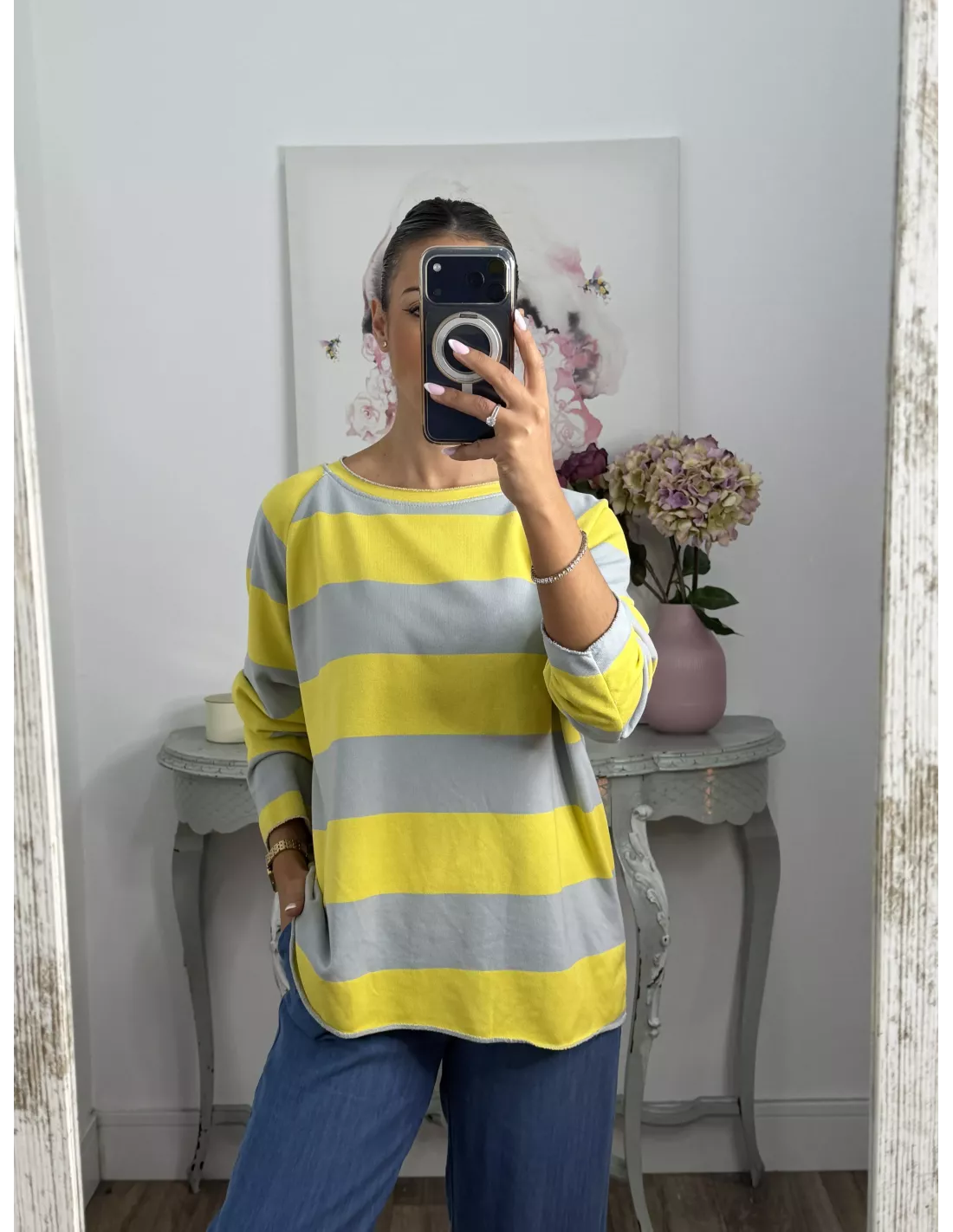 Sudadera de rayas de corte suelto.