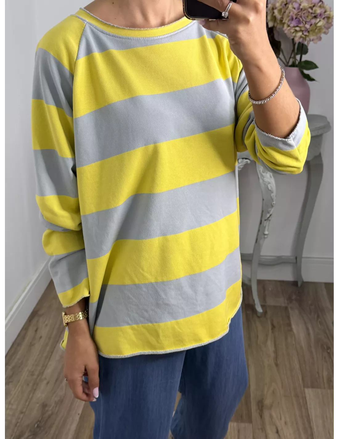 Sudadera Rayas azul amarilla y gris
