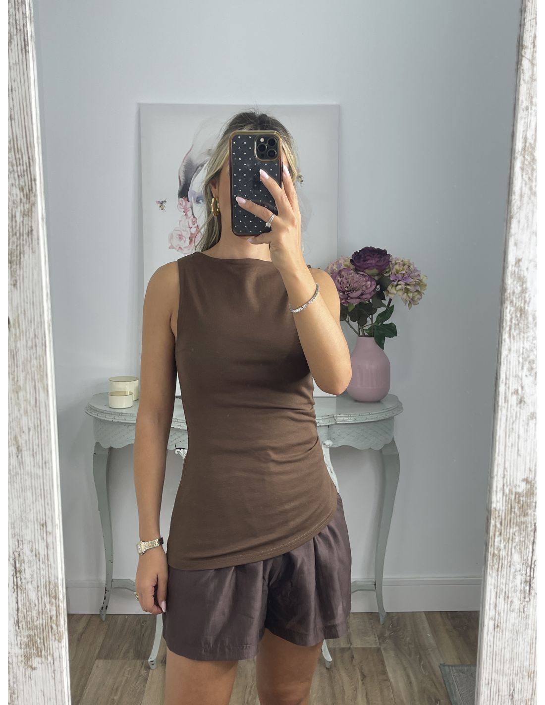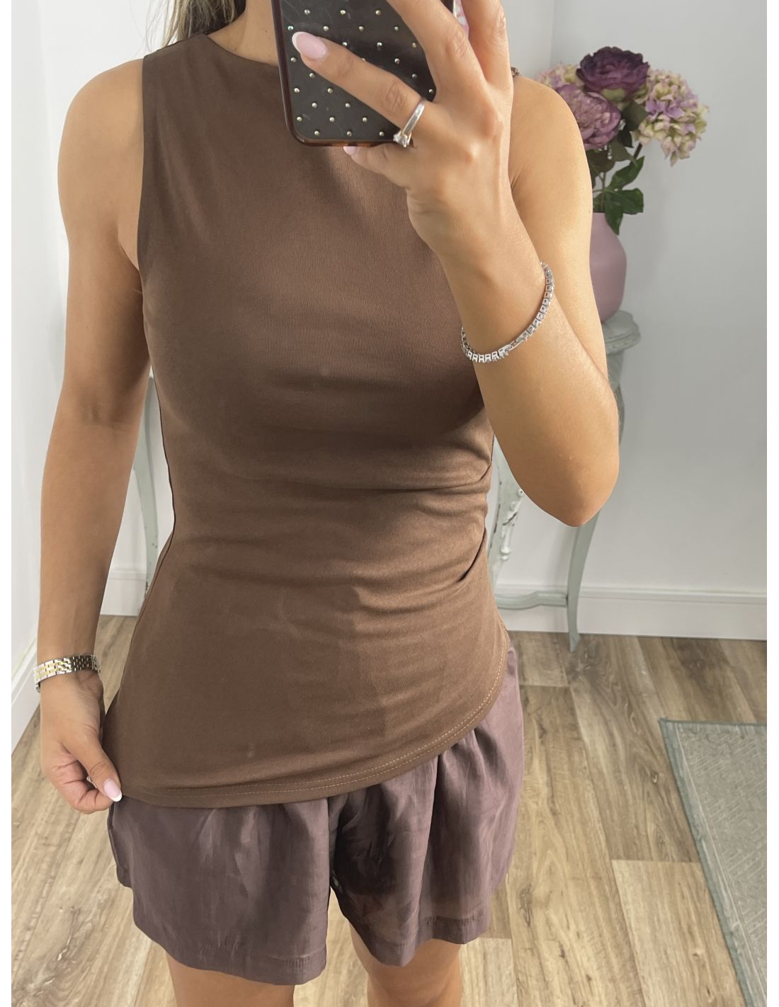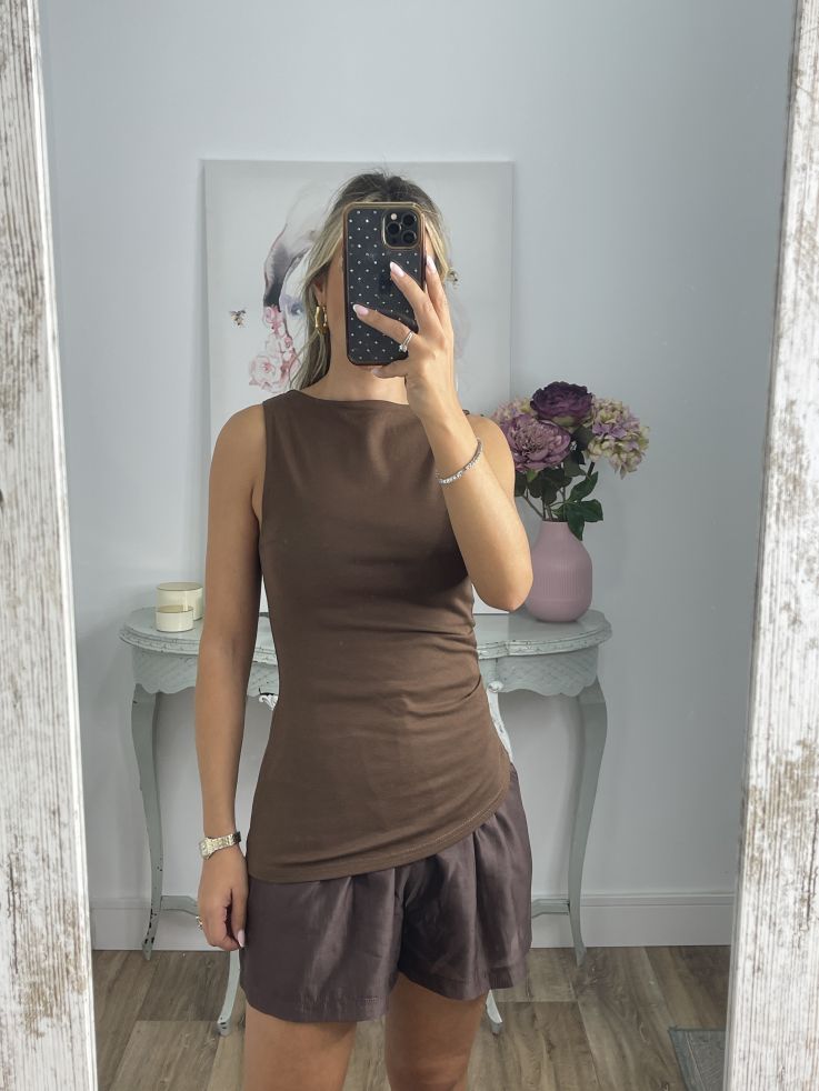 Top chocolate bajo asimétrico