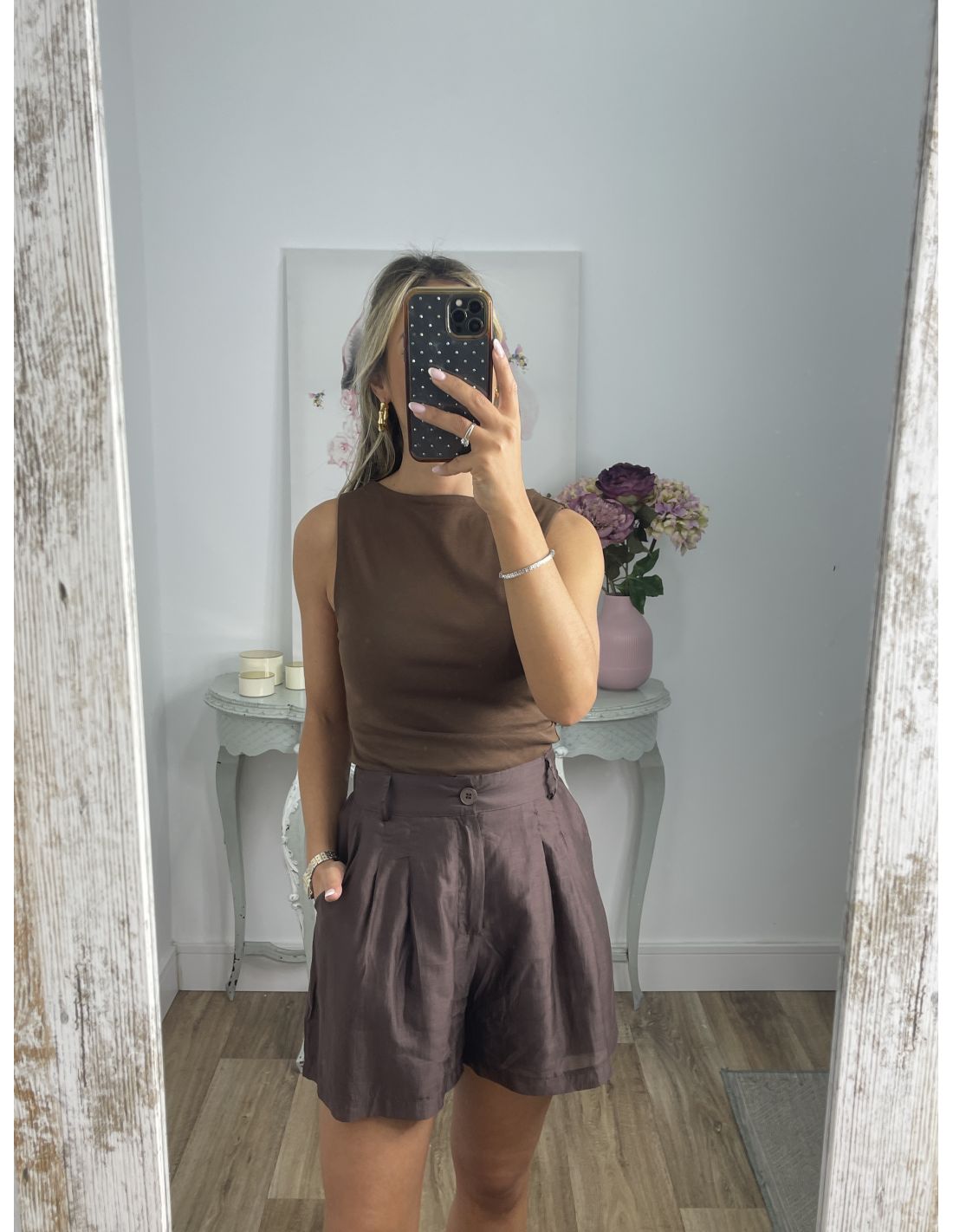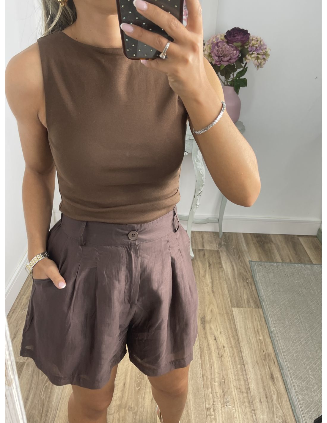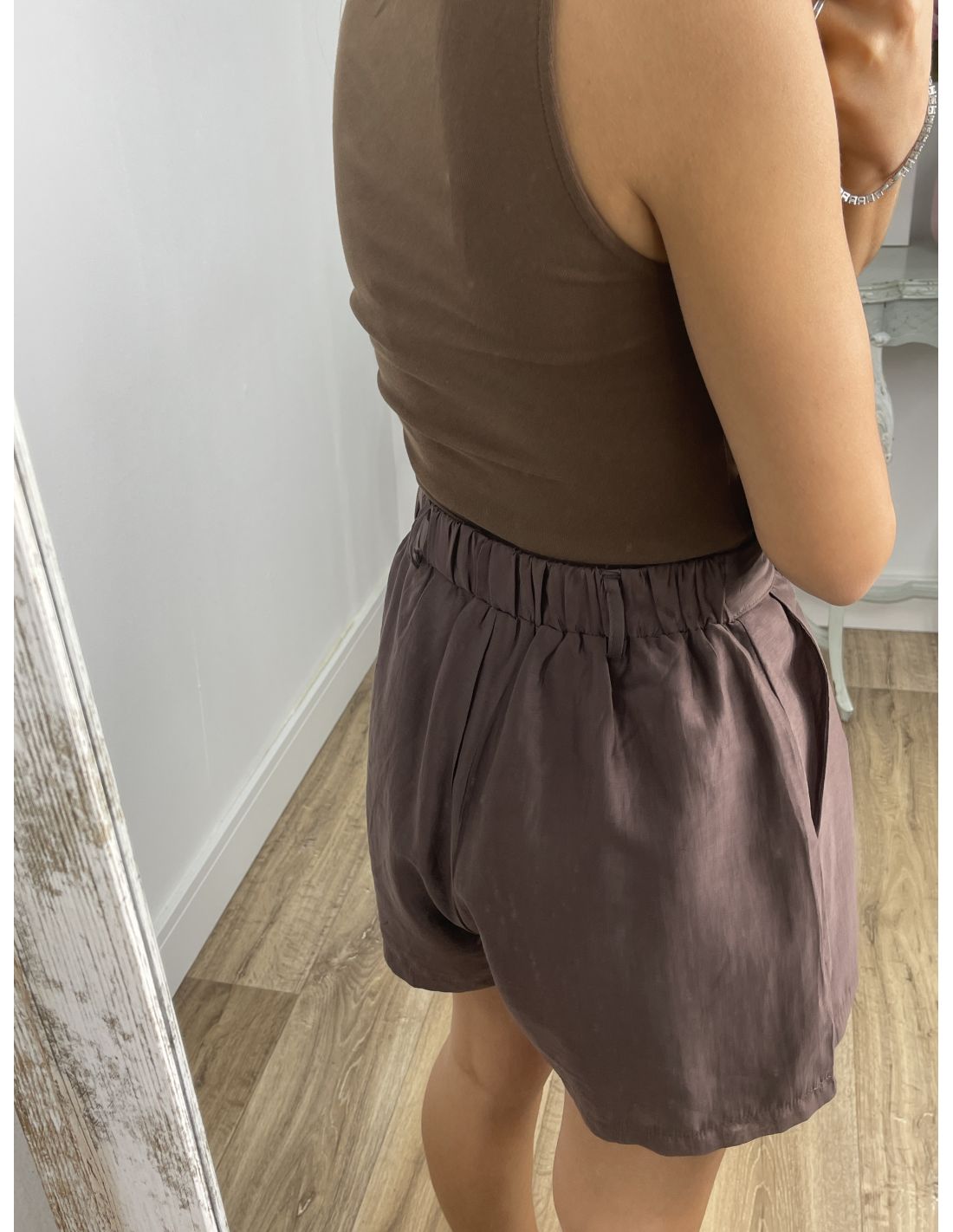 Top chocolate bajo asimétrico
