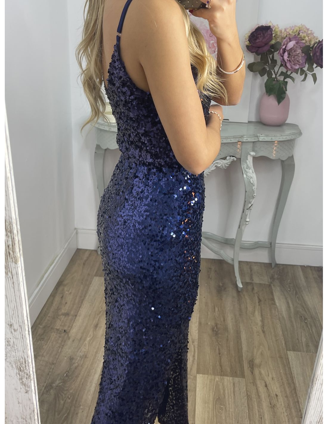 Top de lentejuelas con tiranta regulable. Va forrado y no pica nada.
