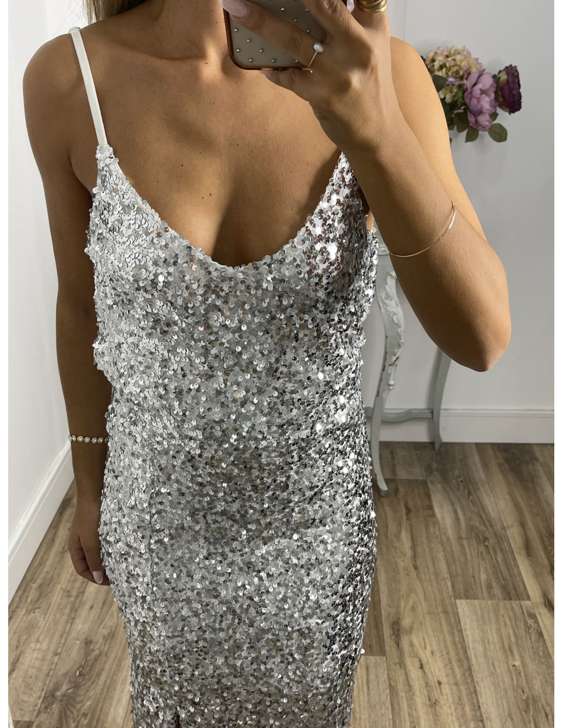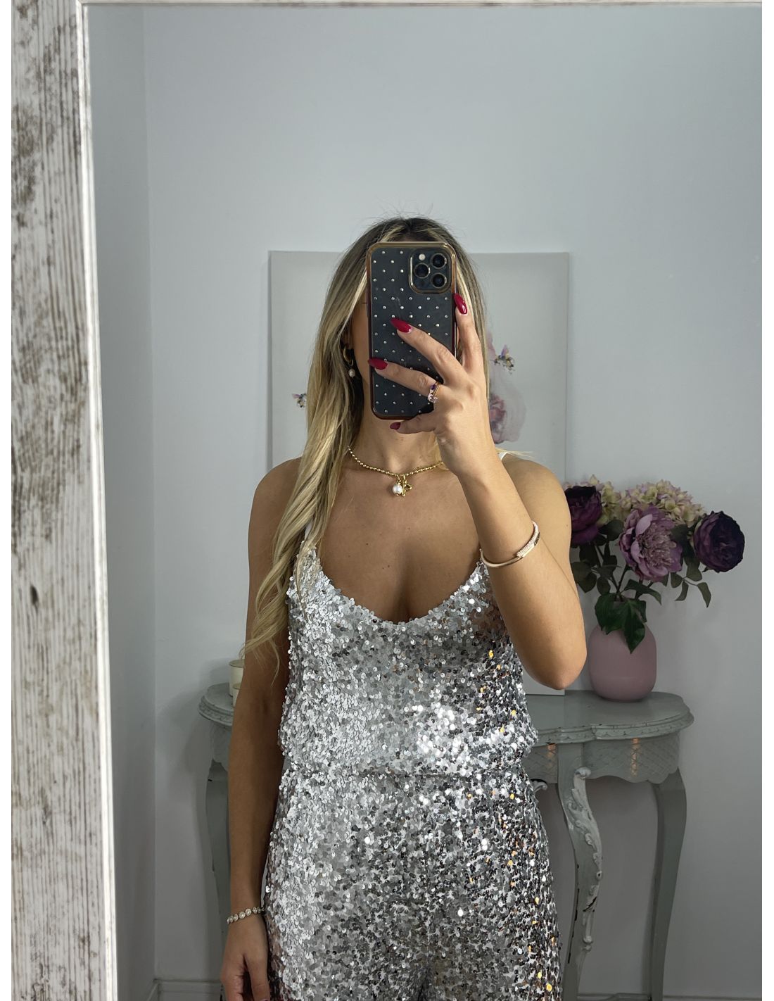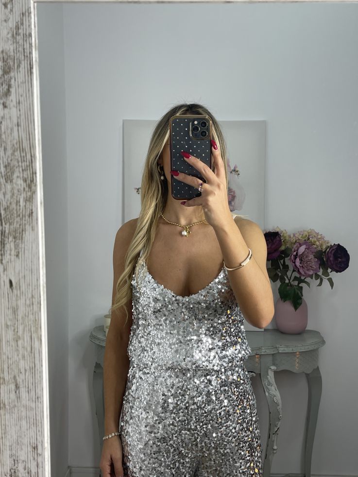 Top de lentejuelas con tiranta regulable. Va forrado y no pica nada.
