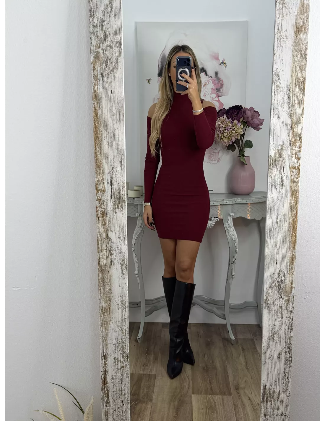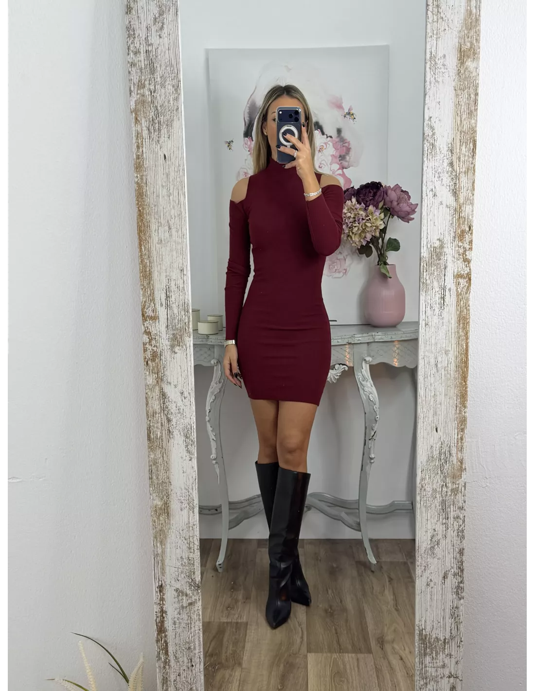 Vestido de punto de corte ajustado con abertura en la zona del hombro.