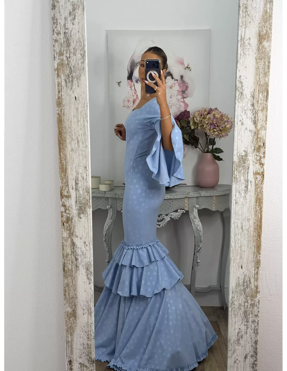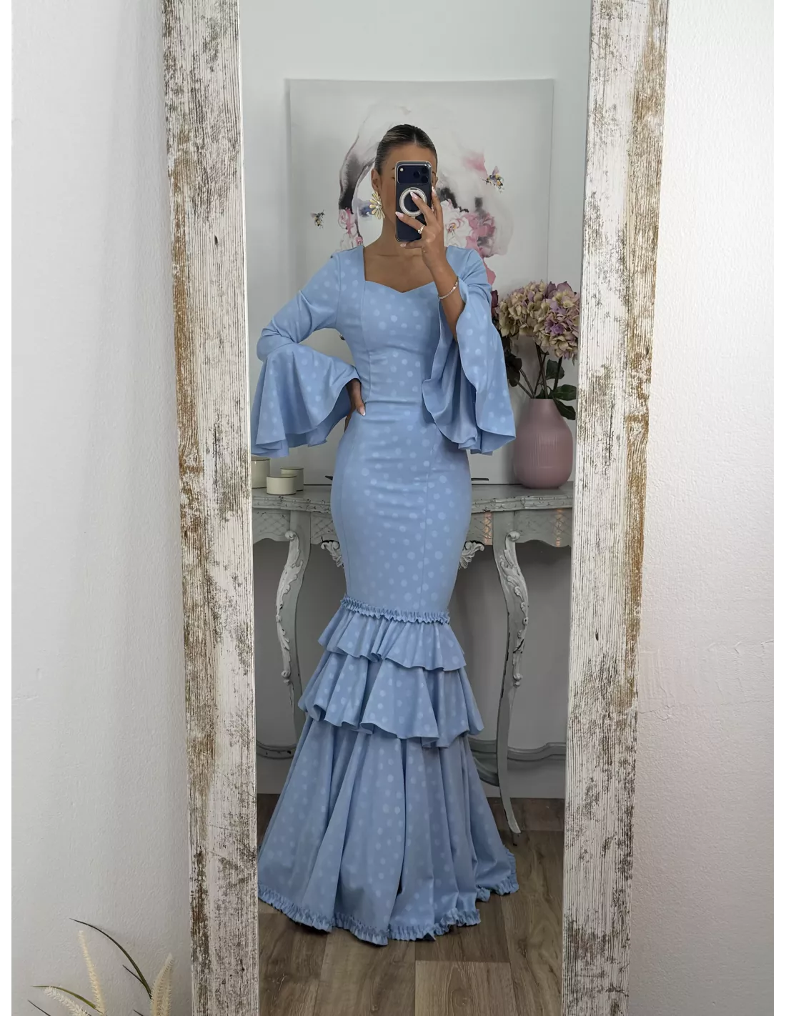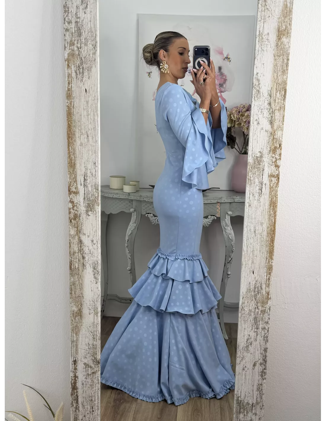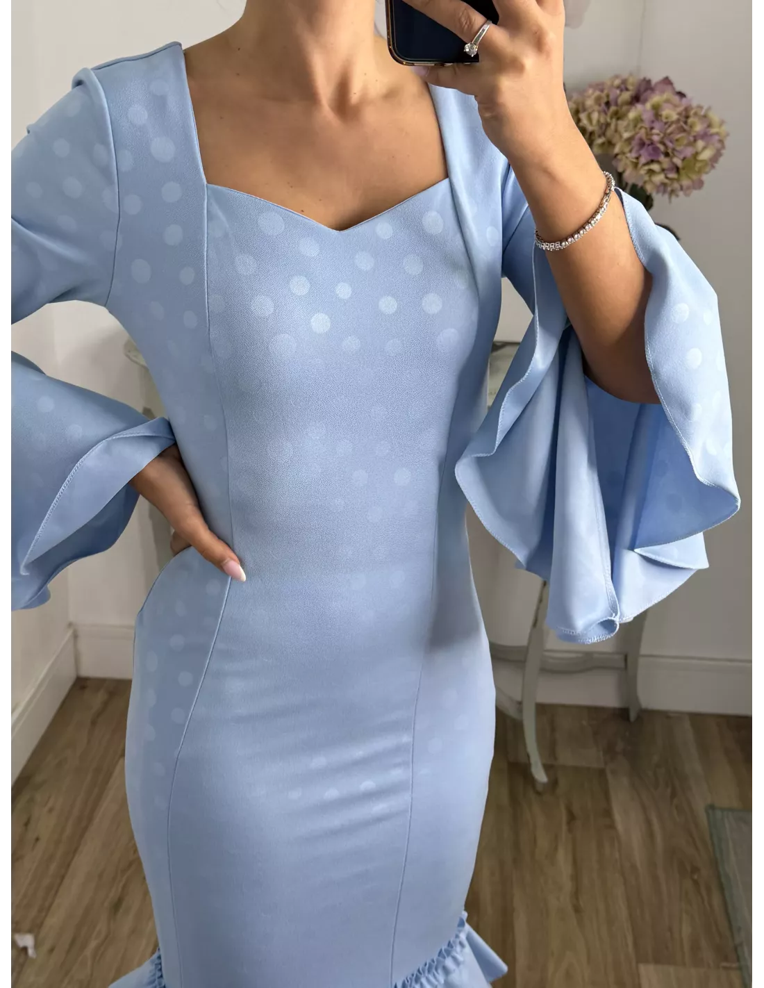 Vestido Abril lunares celeste