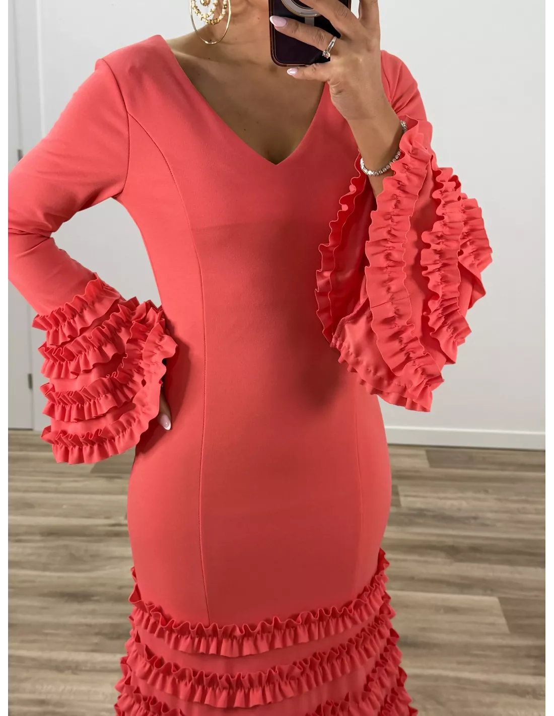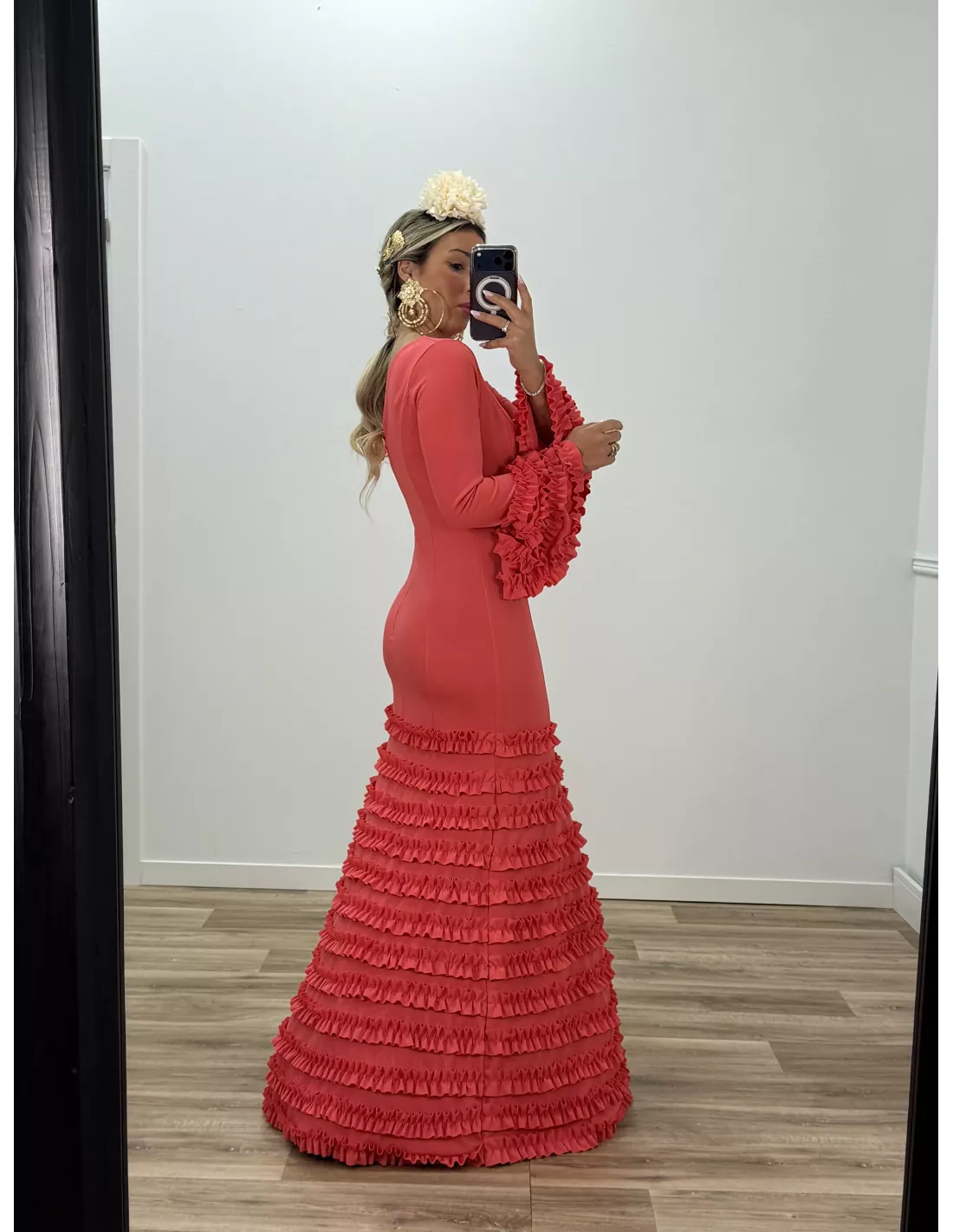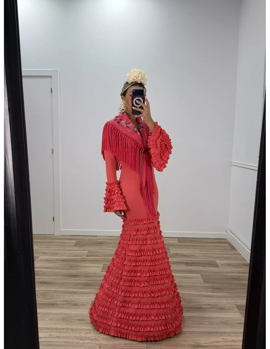 -Talla 3: hombro 43 cm, pecho 46 cm, cadera 48 cm, manga 66 cm, largo 153cm