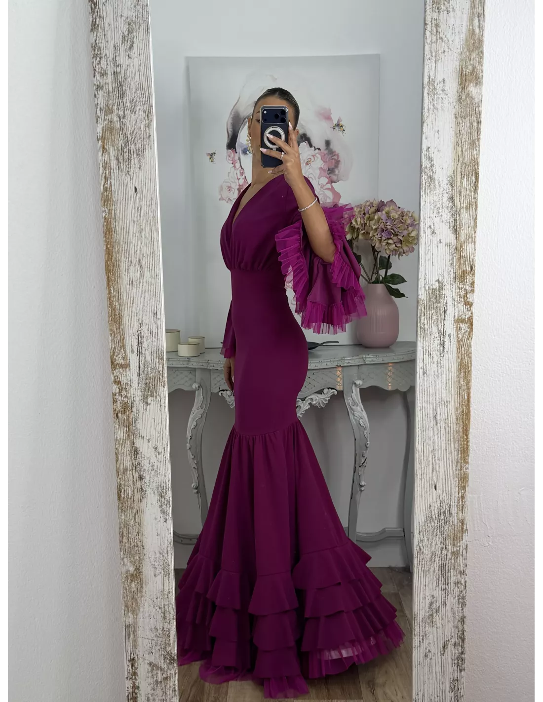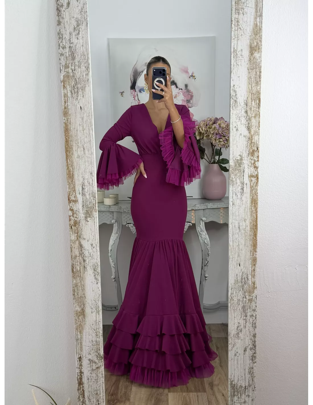 -Talla 3: hombro 42 cm, pecho 47 cm, cadera 46 cm, manga 60 cm, largo 155 cm