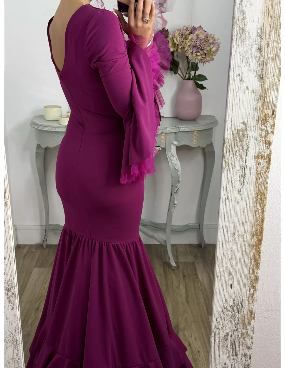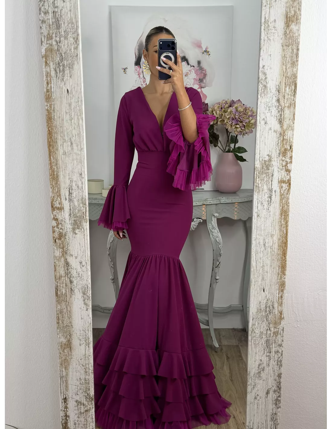 -Talla 2: Hombro 41 cm, pecho 44 cm, cadera 39 cm, manga 57 cm, largo 153 cm