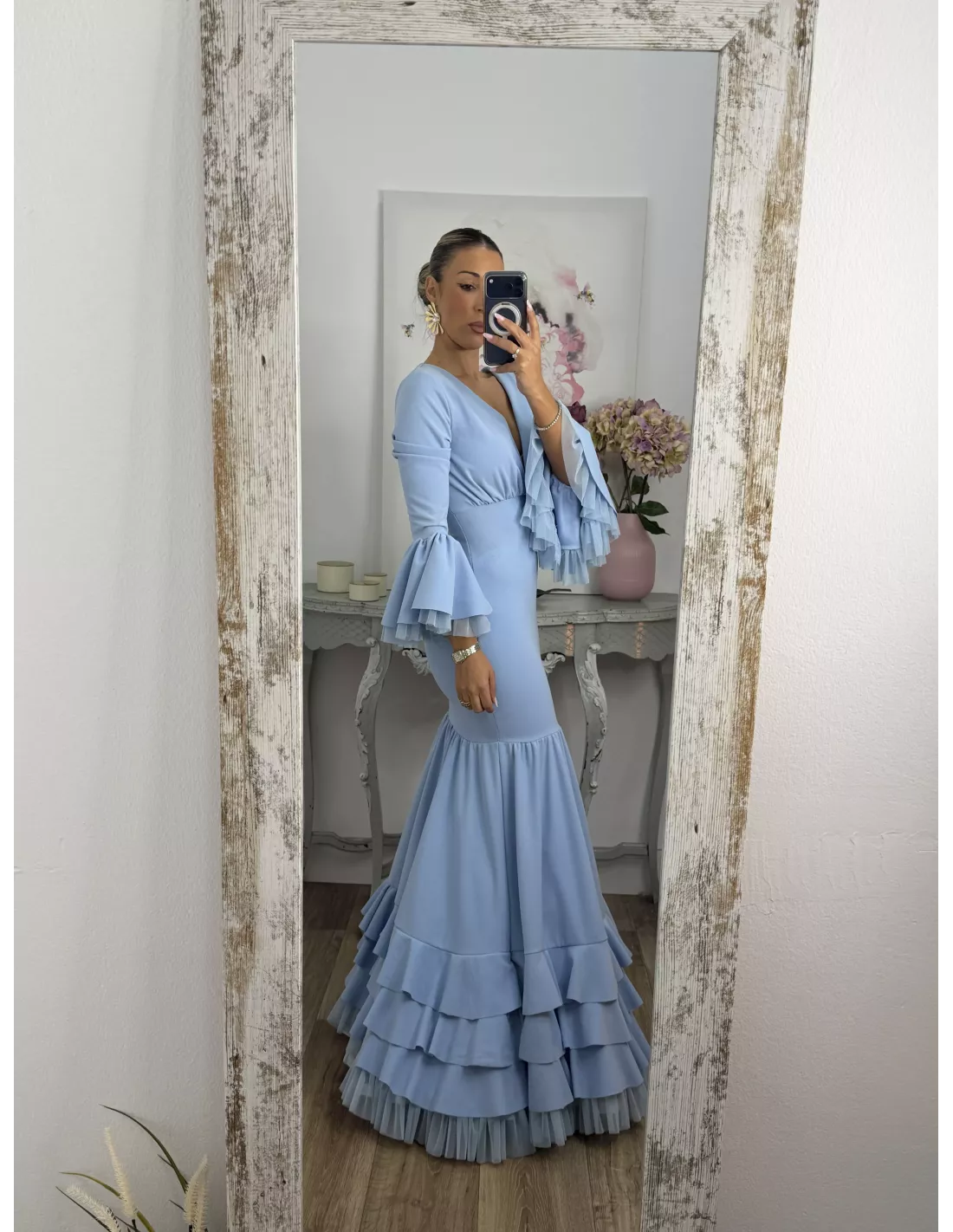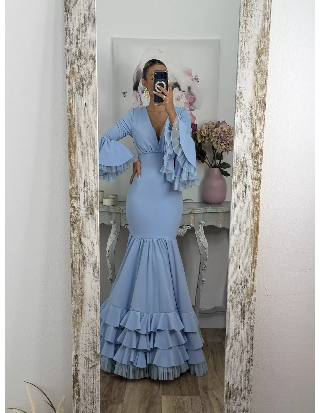 -Talla 1: Hombro 40 cm, pecho, 38 cm, cadera 39 cm, manga 56 cm, largo 152 cm