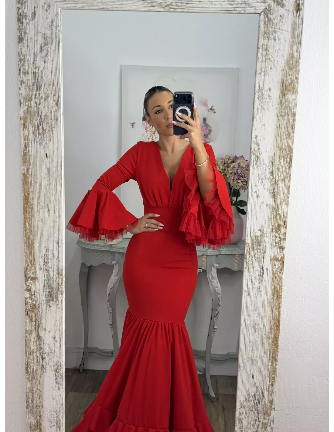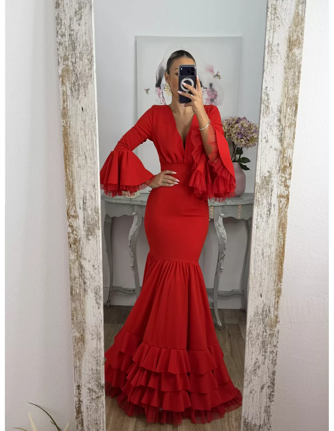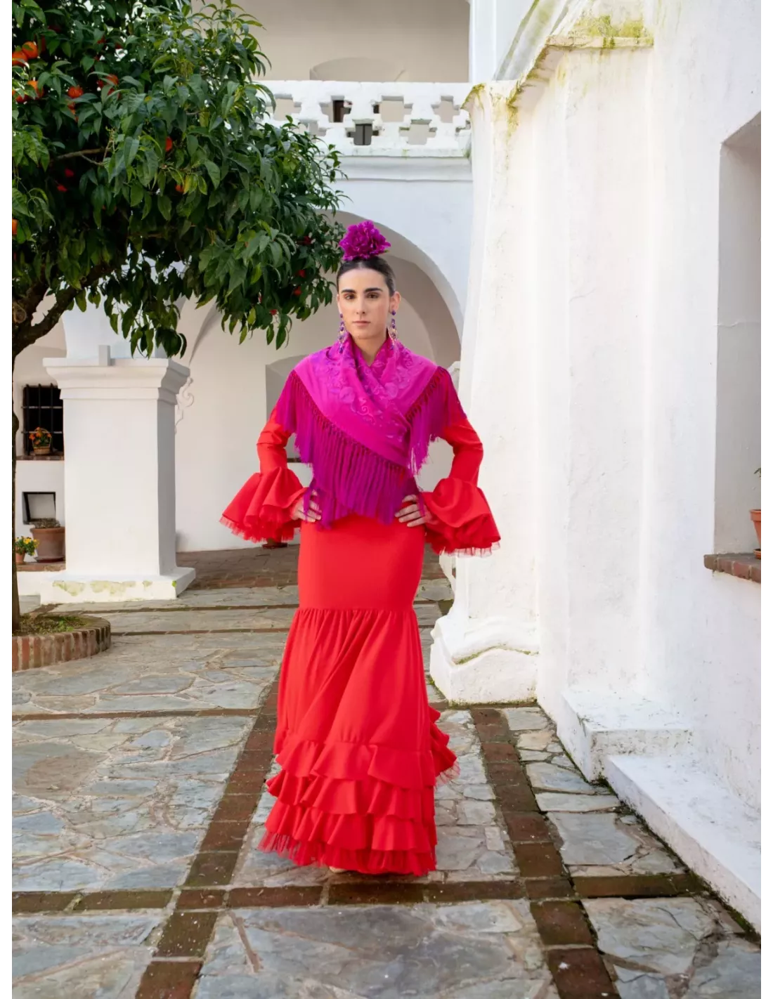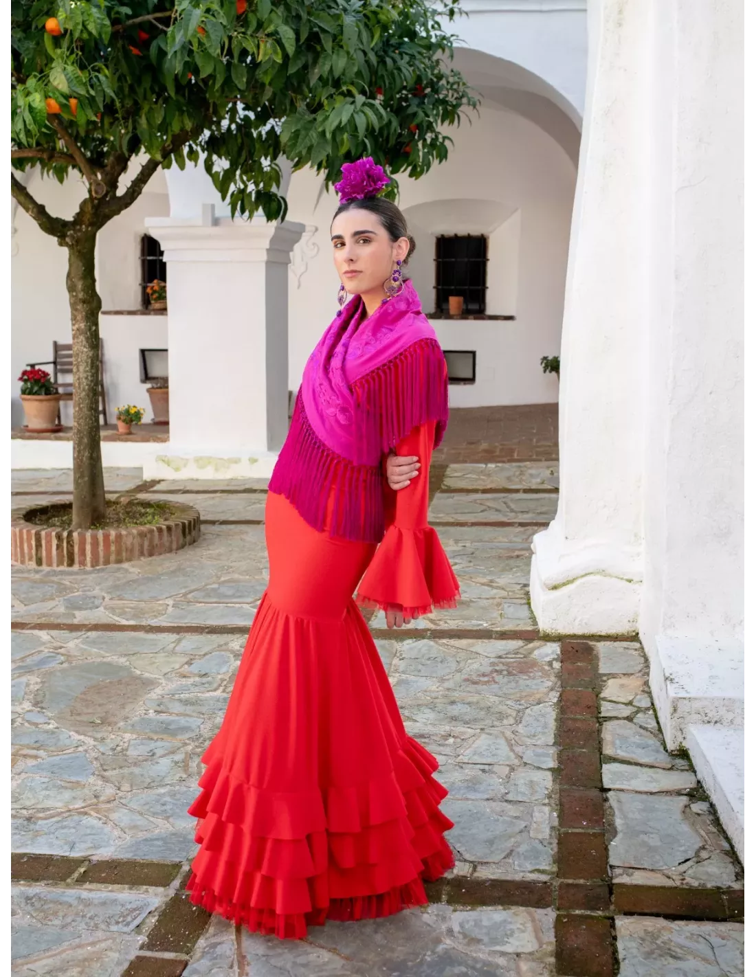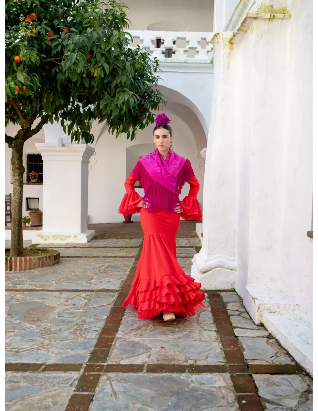 -Talla 3: hombro 42 cm, pecho 47 cm, cadera 46 cm, manga 60 cm, largo 155 cm
