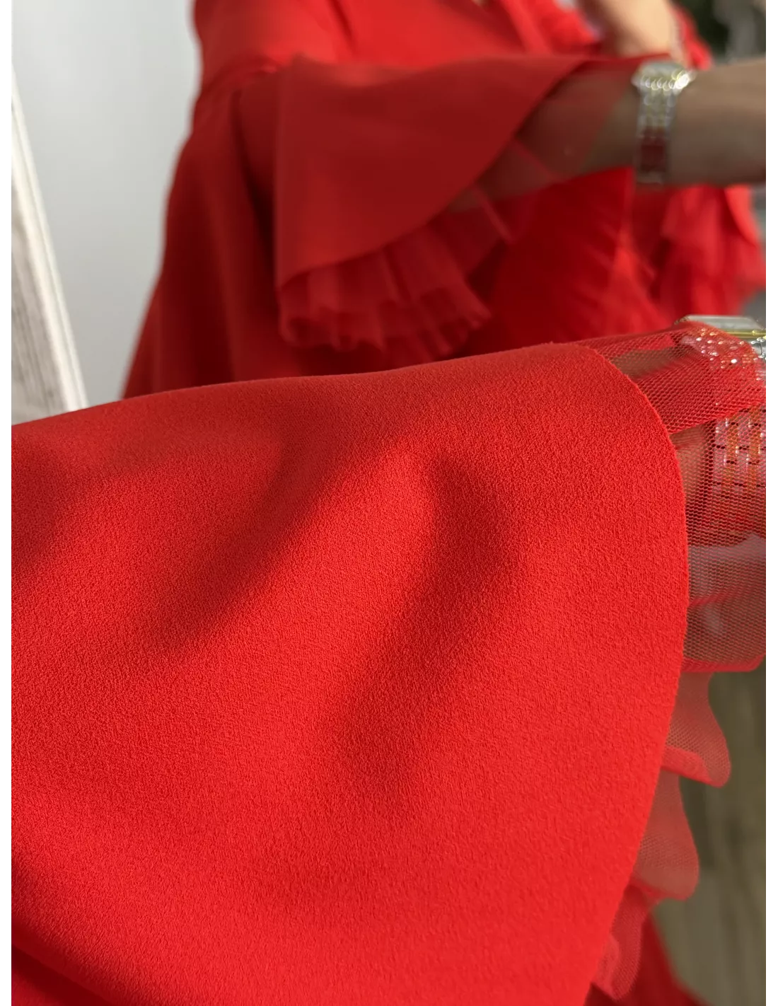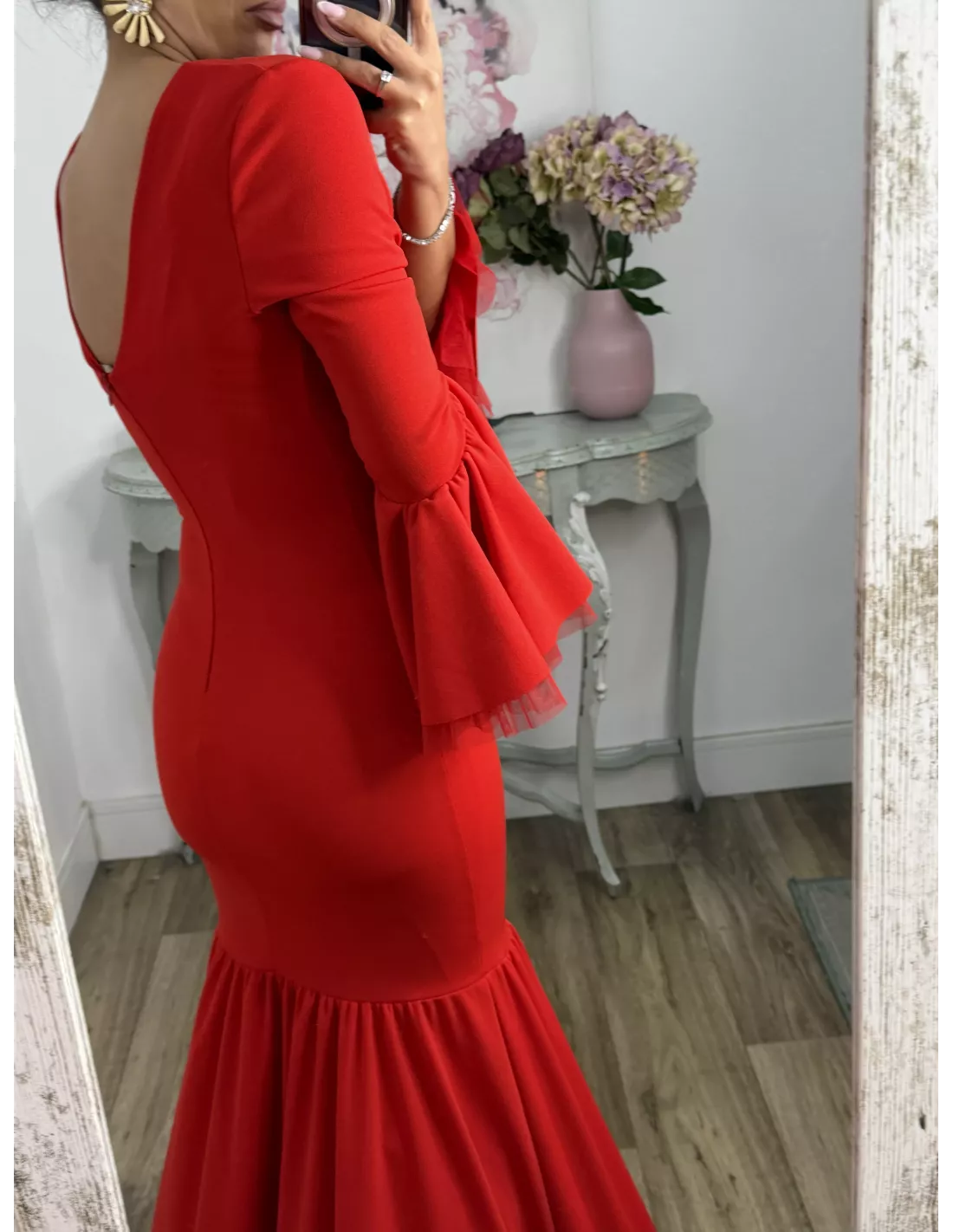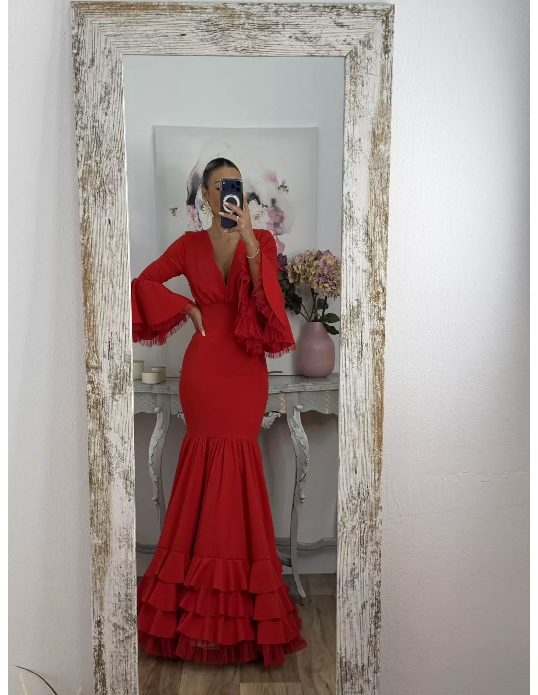 -Talla 2: Hombro 41 cm, pecho 44 cm, cadera 39 cm, manga 57 cm, largo 153 cm