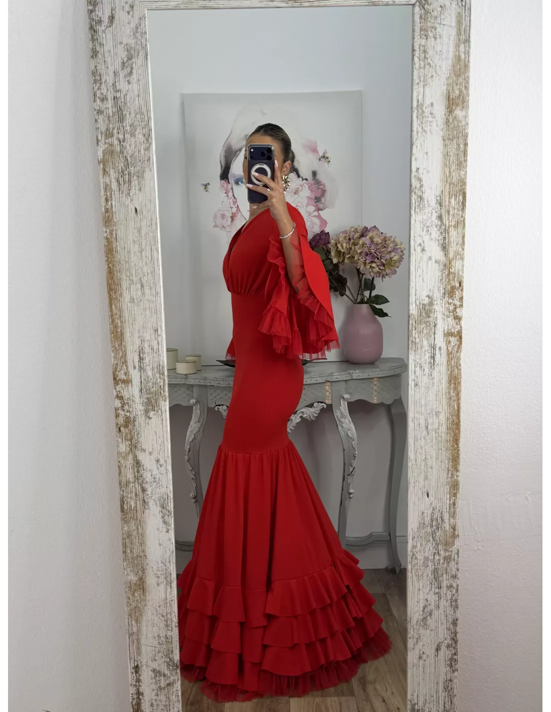 -Talla 1: Hombro 40 cm, pecho, 38 cm, cadera 39 cm, manga 56 cm, largo 152 cm