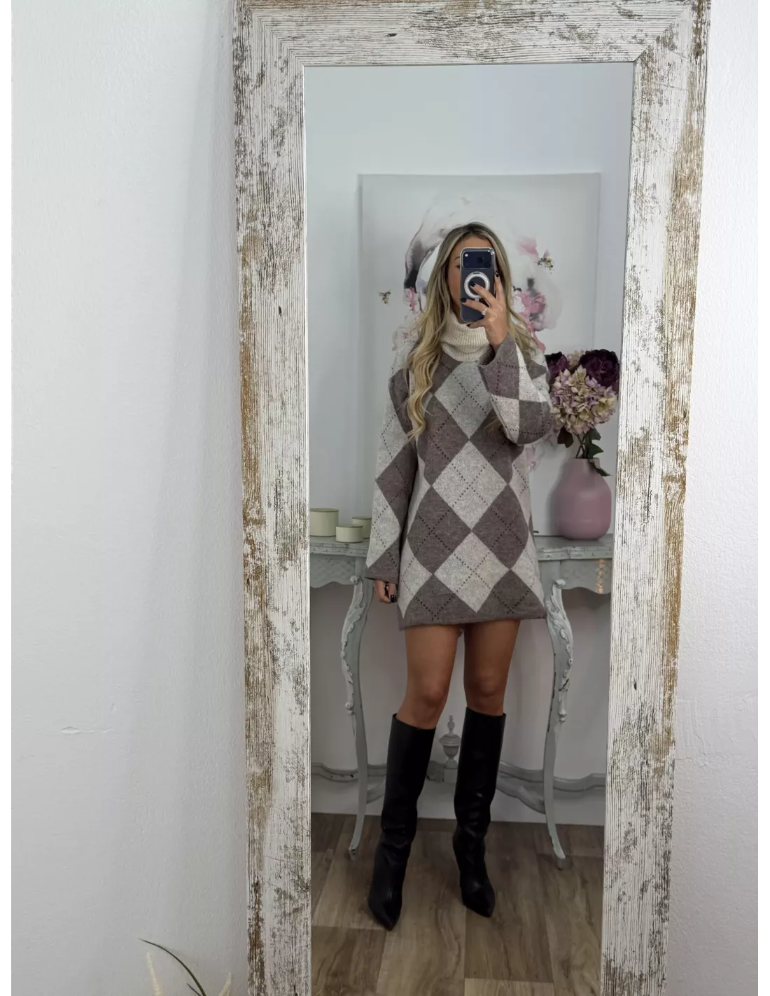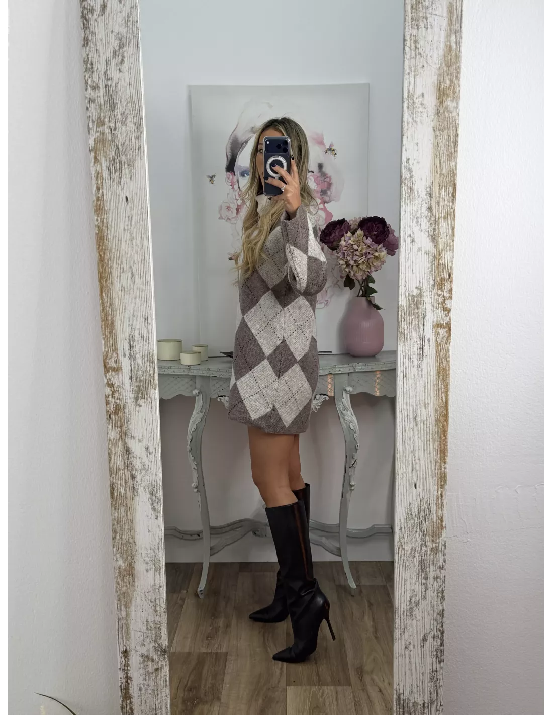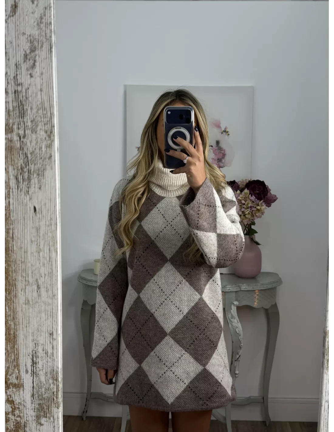 Vestido Cande rombo beige