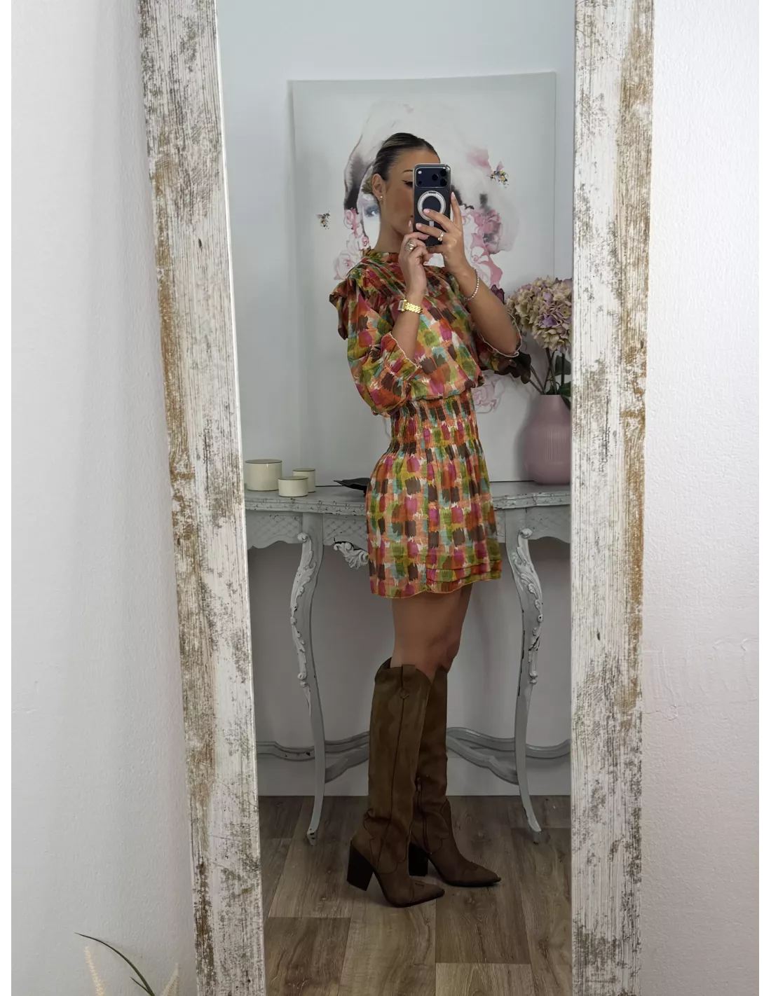 Vestido Colres tono naranja